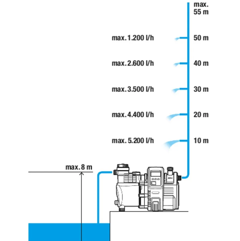 | Maximale opvoerhoogte | 55 m |