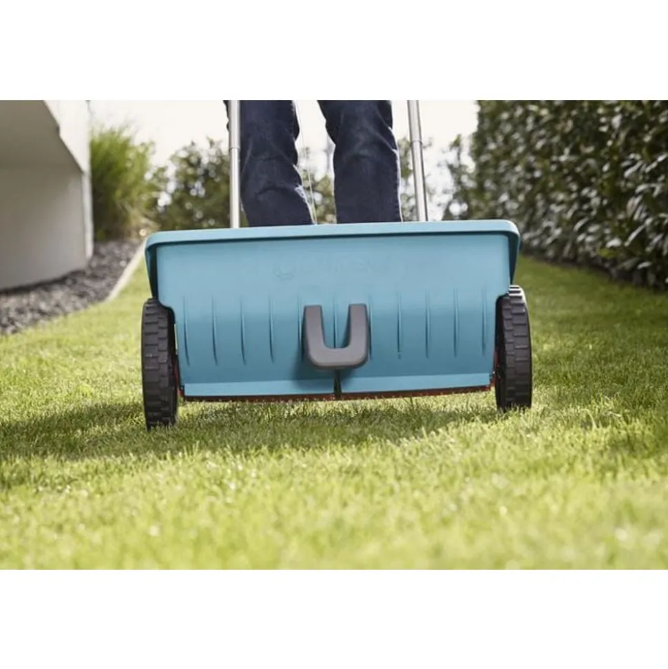 De GARDENA Strooiwagen L is zeer geschikt voor de eenvoudige verspreiding van meststoffen en strooizout op middelgrote oppervlakken. De strooiwagen is eenvoudig te bedienen met de open/sluit-functie op de handgreep, waar ook de juiste doseringshoeveelheid kan worden ingesteld. De schuifklep is voorzien van een afdichtstrip, die morsen voorkomt als de strooiwagen stil staat of bijgevuld wordt. De speciale verspreidingsrol op de GARDENA Strooiwagen L zorgt voor een zeer gelijkmatige verdeling van het strooigoed, zeer nauwkeurig en alleen daar waar nodig. De strooiwagen kan eenvoudig met water worden gereinigd.