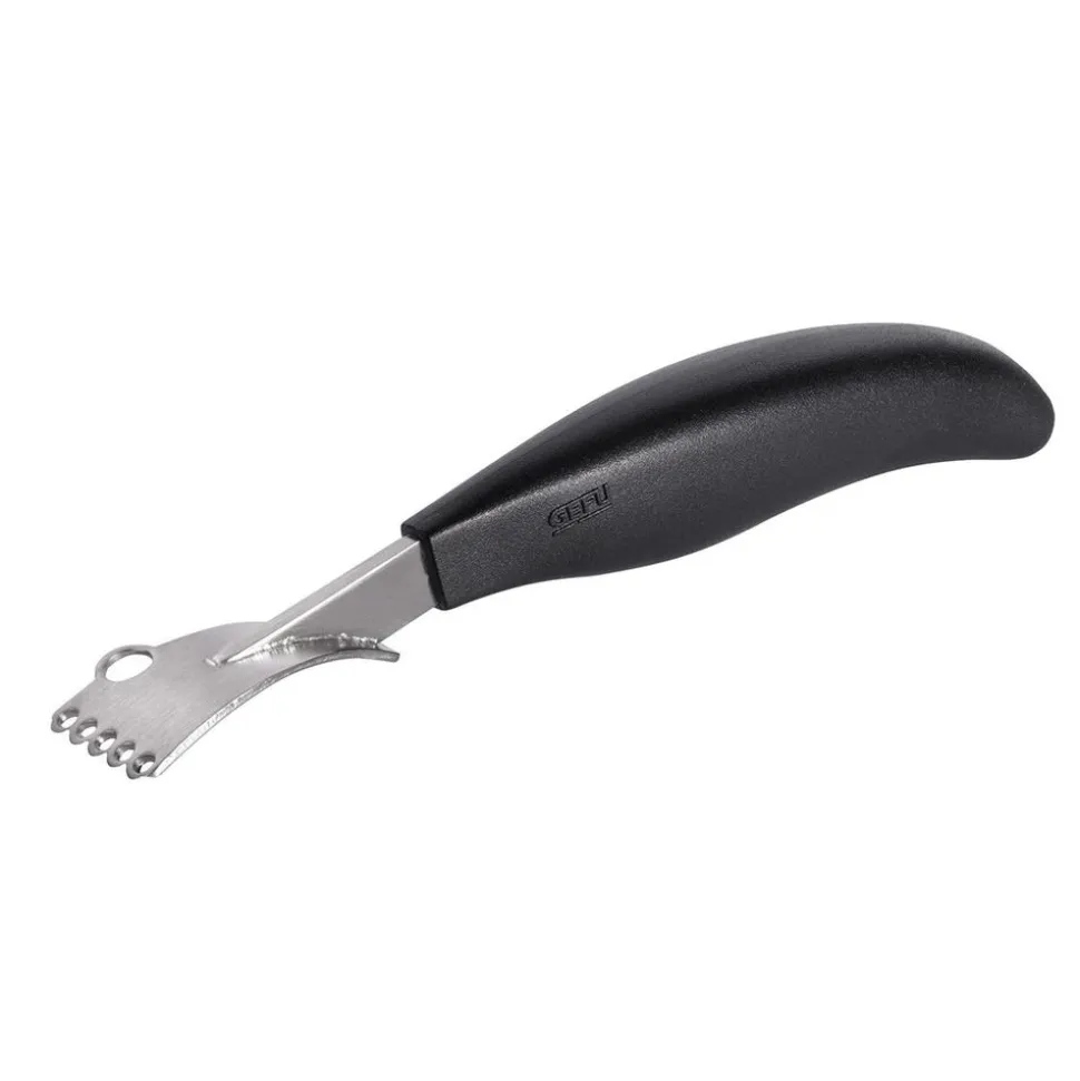 De zester gebruikt zijn roestvrijstalen messen om fijne reepjes van de schil van sinaasappels, citroenen en limoenen te snijden. Met geïntegreerd achtermes voor diepere sneden. Het ergonomische handvat ligt comfortabel in de hand. RVS/kunststof, vaatwasmachinebestendig.