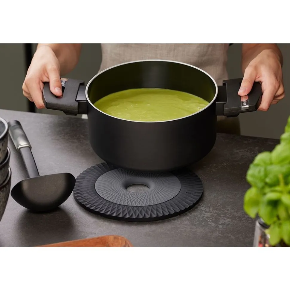 CIRCO is de slimme 2-in-1 siliconen onderzetter voor hete potten en pannen van klein tot groot. Hoog geïsoleerd en bijzonder slipvast door de speciale honingraatstructuur.