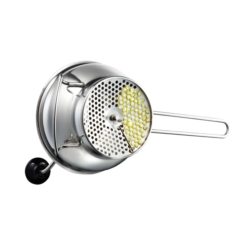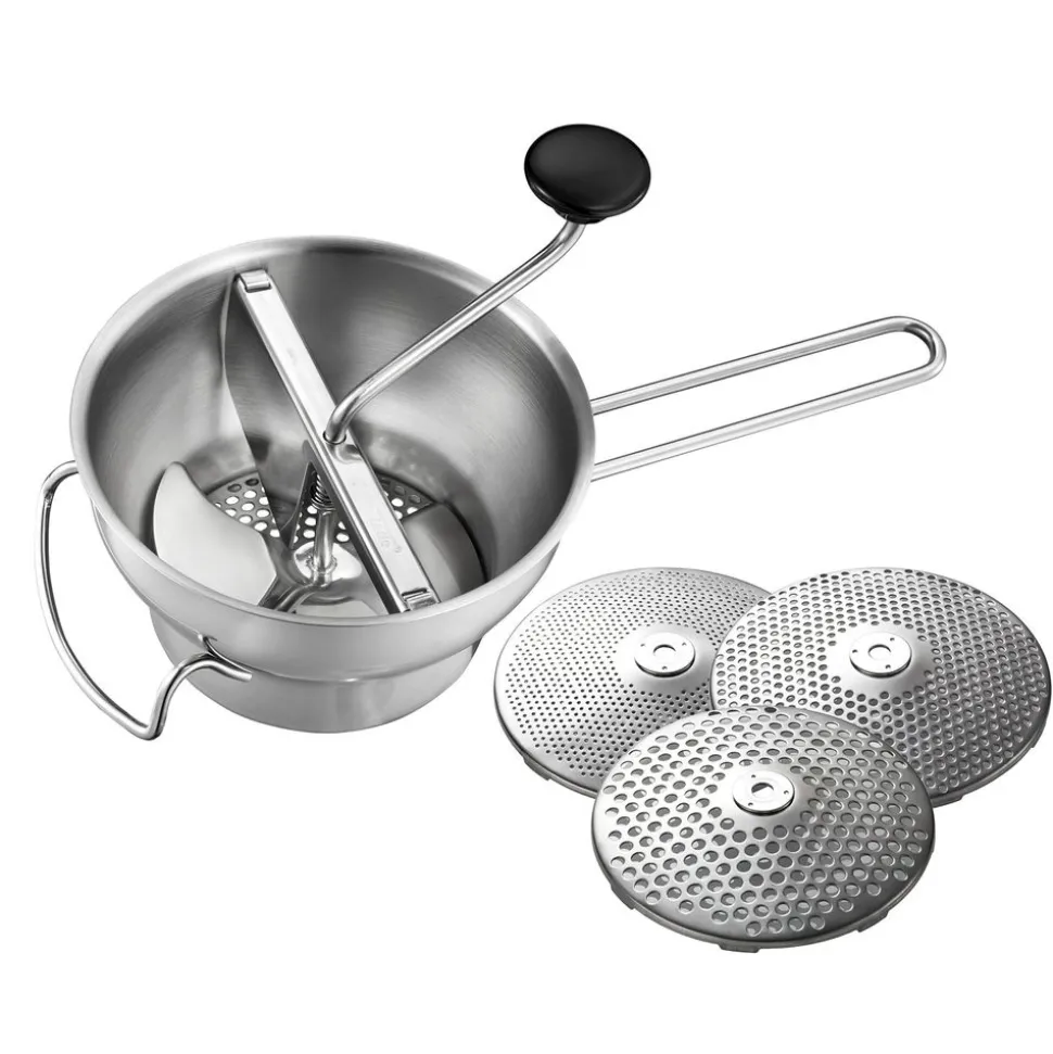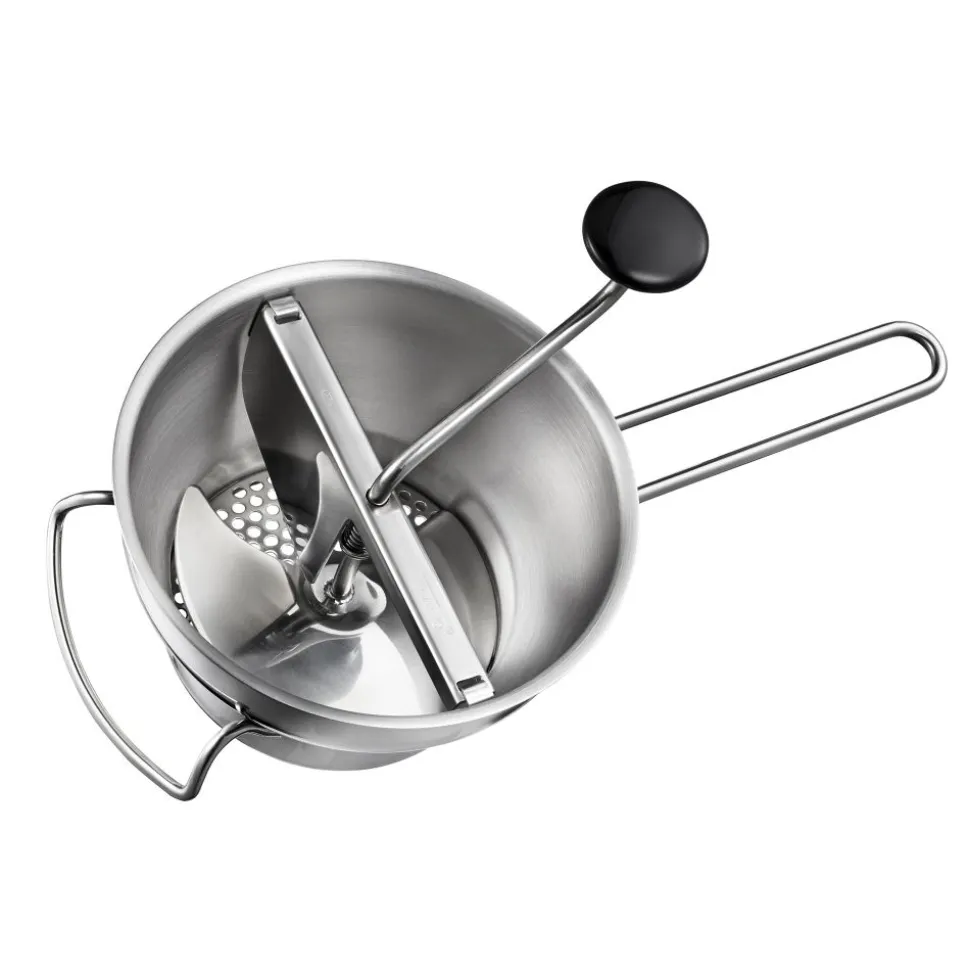 Passeerzeef / Passe Vite ‘Flotte Lotte’ van Gefu. Professionele passeerzeef met twee verwisselbare schijven. Deze sterke, robuuste zeef is gemaakt van roestvrijstaal. Ideaal voor het maken van heerlijke jam, sauzen, soepen, en nog veel meer! Met twee verwisselbare schijven: 2mm en 3mm. Geschikt voor de vaatwasmachine.