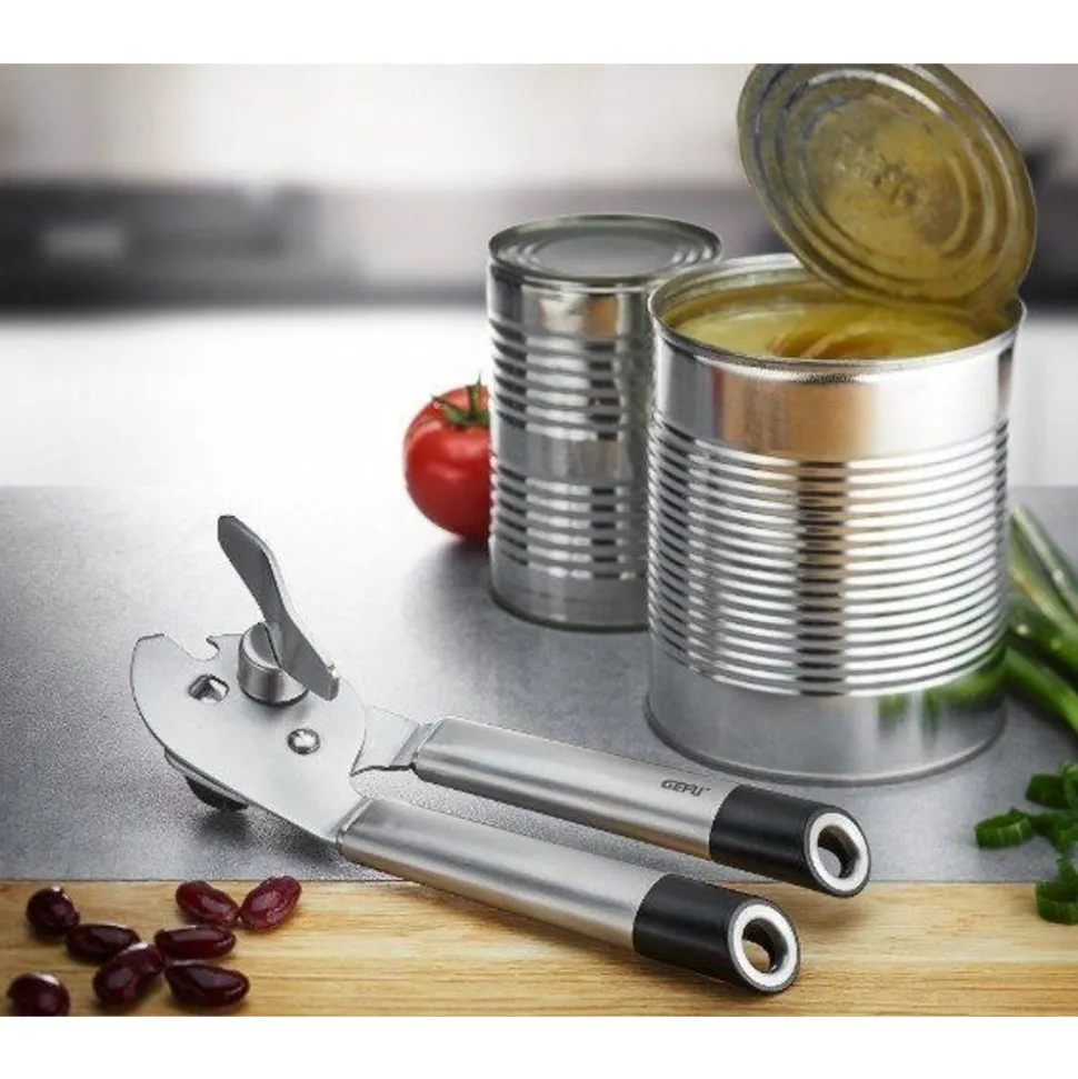 De praktische alleskunner met gehard snijmechanisme voor het moeiteloos openen van blikjes en een geïntegreerde flesopener voor alle flessen met kroonkurk.