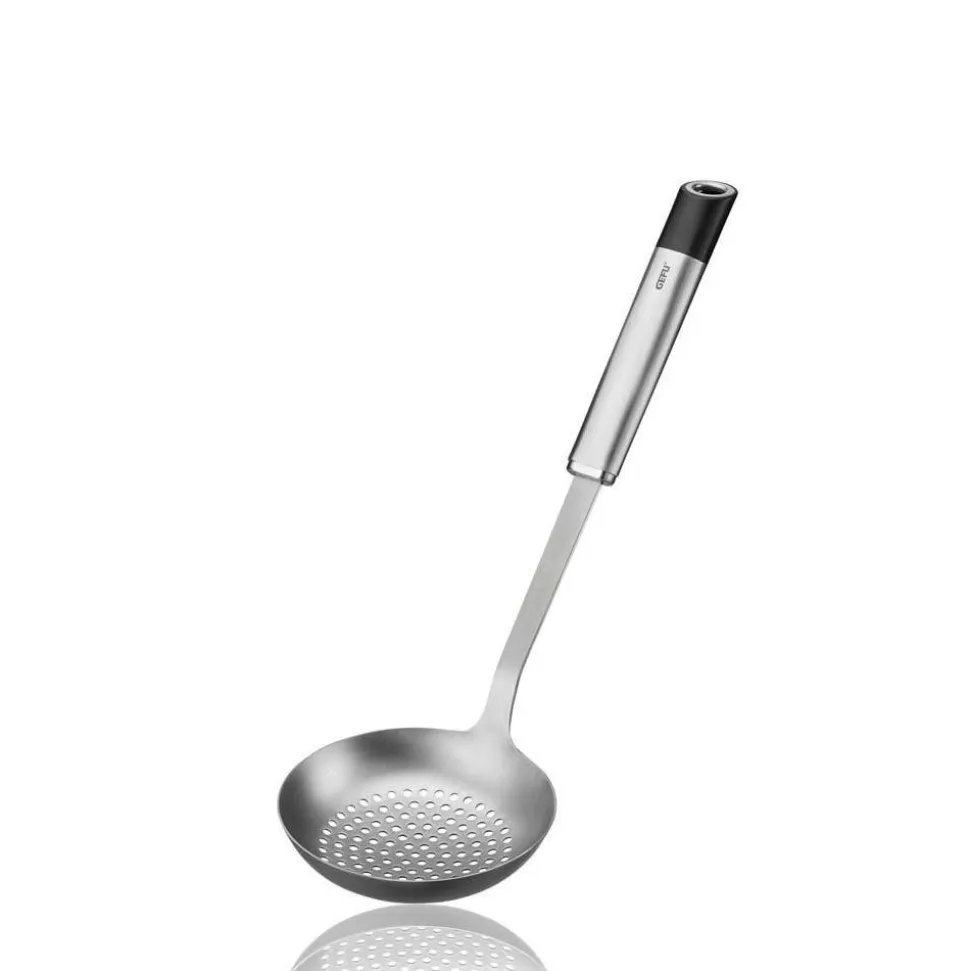 Dumplings, gnocchi en pasta worden veilig uit het kookvocht gehaald met de extra diep gebogen schuimspaan – en overtollig vocht druipt er gewoon af via het geperforeerde schepoppervlak.