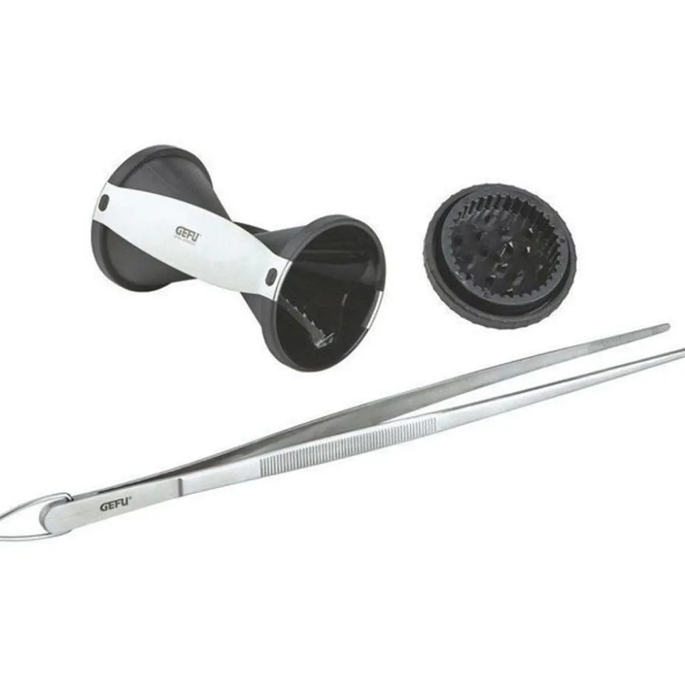 Peugeot Geschenkverpakking Maestro Zoutmolen + 3 zouten (Kalahari, Rose des Andes, Mélange Fraîcheur) graphite light