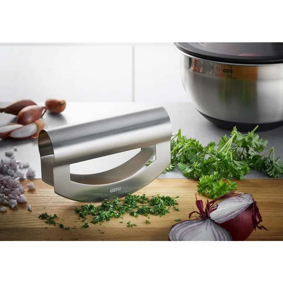 Uien, knoflook, sla en kruiden kunnen niet sneller en moeiteloos worden gesneden of gehakt. Precies het juiste hulpmiddel voor chef-koks en degenen die chef-kok willen worden.