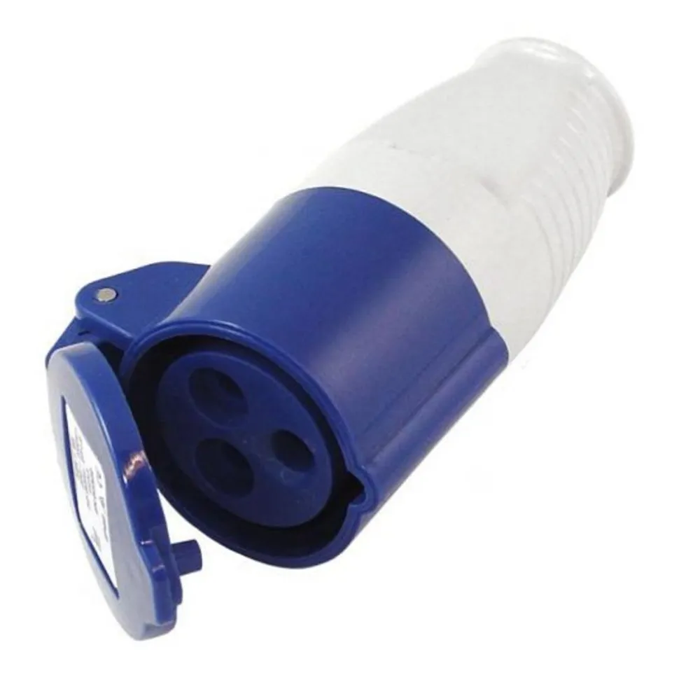 De CEE contrastekker wordt op de contactdoos van de camper of caravan aangesloten.