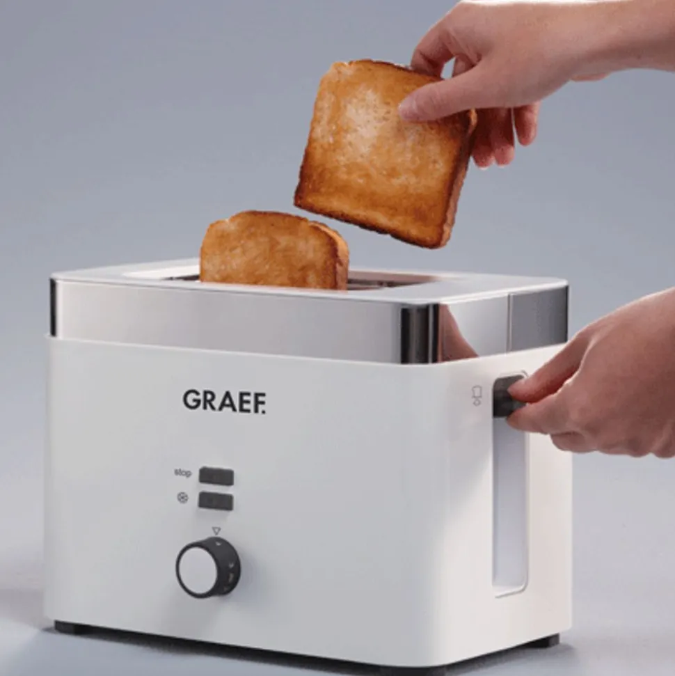 Toaster met 2 sleden. Kunststof uitvoering en ‘COOL WALL’ behuizing. Automatische centrering van het brood. ‘Stop’- en ‘ontdooi’ toets. Regelbare bruiningsgraad (6 standen). ‘SOFT LIFT’ functie voor het voorzichtig omhoog komen van de toast. ‘EXTRA LIFT’ functie voor het makkelijk uitnemen van de toast. Uitneembare kruimellade. Geleverd met opzetstuk op pistoletjes. op te warmen. Kan ook gebruikt worden als toastrekje. Zeer stabiel dankzij de antislipvoetjes.