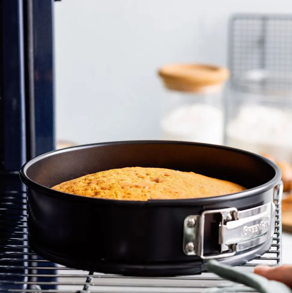 Met z’n nieuwe collectie bakvormen brengt GreenPan zijn expertise in PFAS-vrije antiaanbaklagen van het fornuis naar de oven! De collectie is gemaakt van stevig gealuminiseerd staal, waardoor ze oersterk is. Ze is kras- en corrosiebestendig, en trekt niet krom. De PFAS-vrije antiaanbaklaag zorgt ervoor dat voedsel makkelijk loskomt, zodat je je heerlijke creaties niet beschadigt als je ze uit de bakvorm haalt. De bakvormen schoonmaken, is kinderspel. Alle bakvormen – behalve de springvorm en muffinvorm – zijn bovendien vaatwasserbestendig. Extra makkelijk!