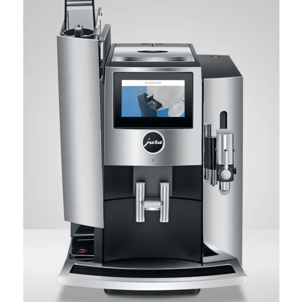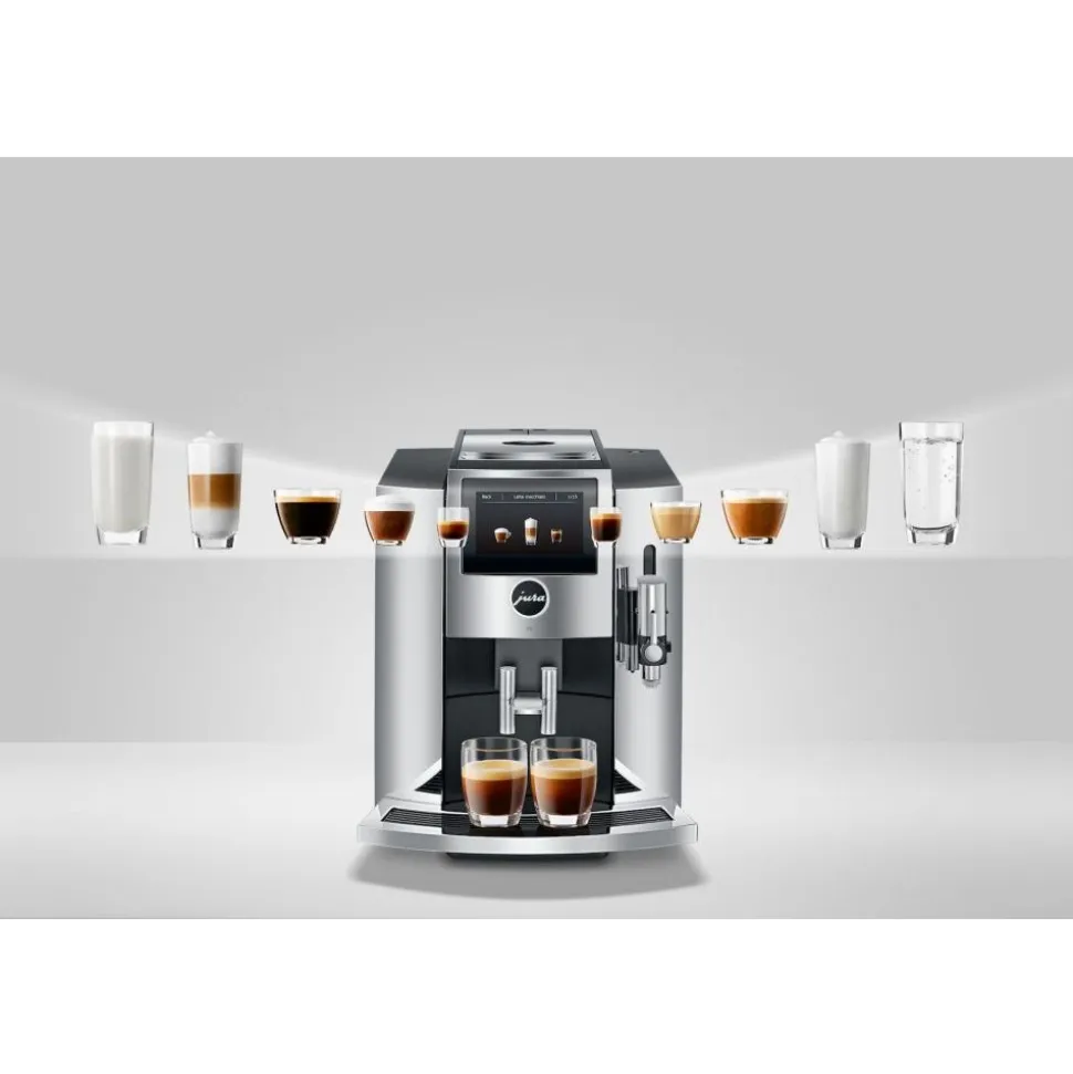 De stijlvolle nieuwe JURA S8 Chroom (EA) straalt straalt door zijn design in alle opzichten kwaliteit en luxe uit. Deze volautomaat heeft elementen uit de beste compacte modellen, uit het premiumsegment en zelfs een vleugje GIGA.De imponerende diversiteit aan specialiteiten en het overweldigende koffieresultaat overtuigen zelfs de grootste fijnproevers.