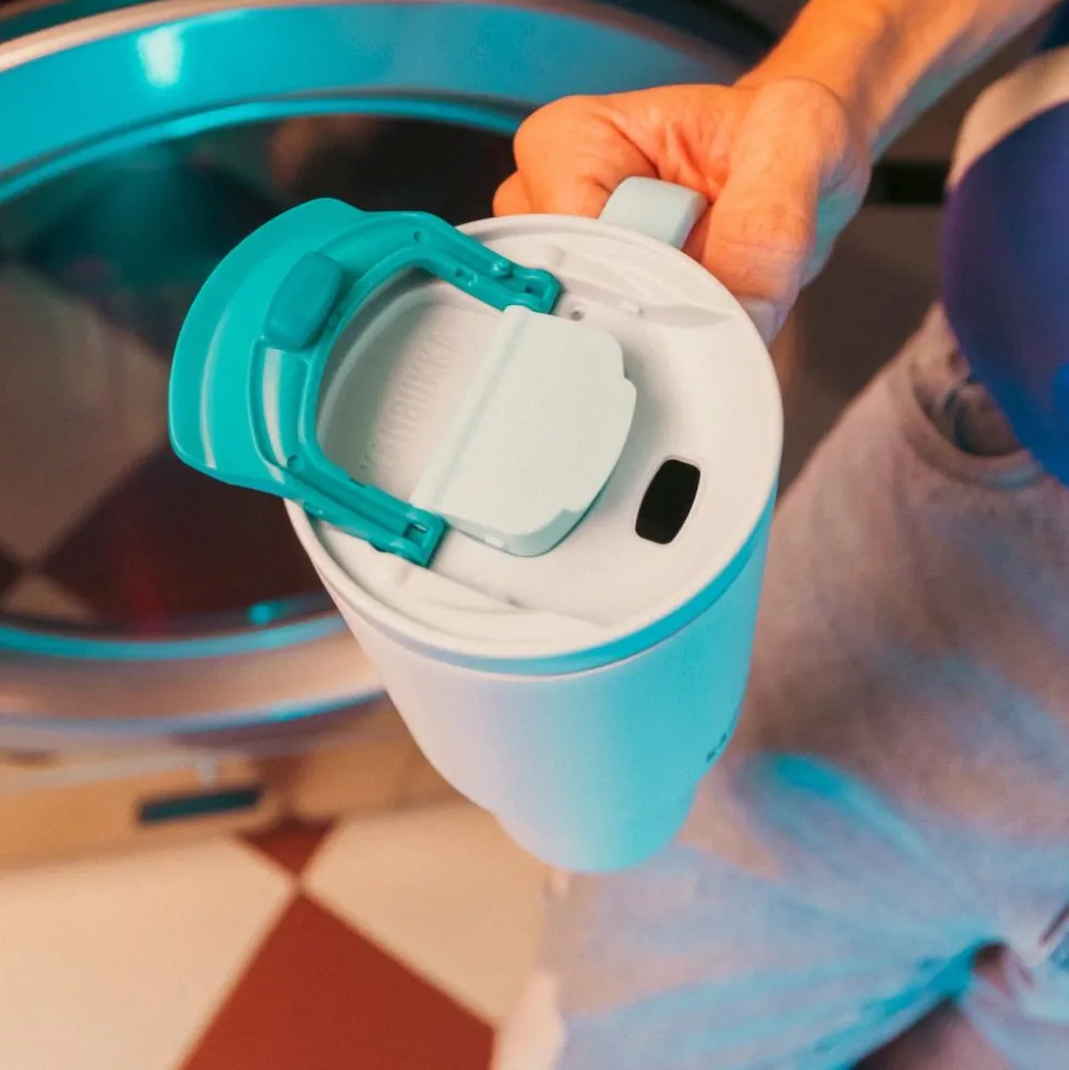 Innovatief rietje dat volledig in de tumbler verdwijnt voor compact en hygiënisch gebruik.
