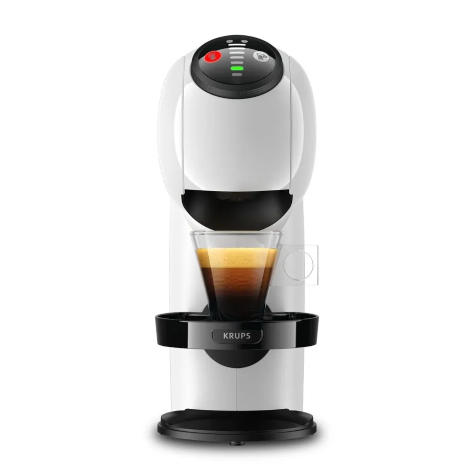 Een ultramodern ontwerp dat optimaal gebruiksgemak vooropstelt. Ziehier het nieuwe NESCAFE?® Dolce Gusto®Genio S koffiezetapparaat van Krups®. Met een oogstrelend ontwerp en in een ongelofelijk compact formaat.Voor een verbazingwekkend elegante toets in de keuken. Laat u niet misleiden door het compacte formaat: dereeks koffiepads functies waarover deze koffiezetter beschikt haalt de barista in ieder van ons naar boven. DeXL-functie van het koffiezetapparaat stelt u in staat de gewenste hoeveelheid koffie van uw drankje in te stellenEr zijn meer dan 30 koffiecreaties mogelijk, gaande van koude tot hete dranken. En met het hogedruksysteembekomt u telkens weer in een mum van tijd kwaliteitsvolle koffie Plaats eenvoudigweg een van onze hermetischgesloten koffie capsules en beleef het genot van het pure aroma in elk kopje koffie.