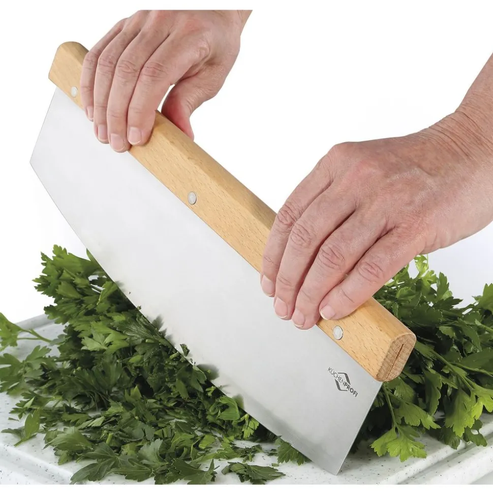 De ovendeur gaat open en de pizza ruikt naar jouw favoriete Italiaanse restaurant om de hoek. En het snijden van het platbrooddeeg gebeurt nu ook heel professioneel. Met het pizzahakmesvan KÜCHENPROFI verdeel je het juweeltje snel en zonder moeite. Dankzij het doorlopende handvat ligt de must-have voor elke pizzamaker comfortabel en veilig in de hand. Het scherpe mes snijdt de knapperige bodem af zonder dat de salami, tonijn etc. wegglijdt. Je kunt het hakmes ook gebruiken bij het snijden van noten of kruiden.