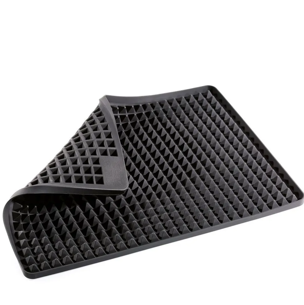 Hoge knapperigheidsfactor, laag vetgehalte. Kenners die op hun gezondheid letten, vertrouwen op de PYRAMIDE ovenmat van KÜCHENPROFI. Deze is zo ontworpen dat de lucht gelijkmatig kan circuleren. Het circulerende luchteffect garandeert een gelijkmatige warmteverdeling. Groenten, vis, vlees, gevogelte en gebakken aardappelen worden bruin gebakken tot ze knapperig zijn en het overtollige vet in de uitsparingen wegloopt. De ovenmat heeft uitstekende antiaanbakeigenschappen; U kunt uzelf de moeite besparen van het invetten en omdraaien van uw voedsel. Als herbruikbaar alternatief voor conventioneel bakpapier is het ook een gouden tip als het om duurzaamheid gaat.