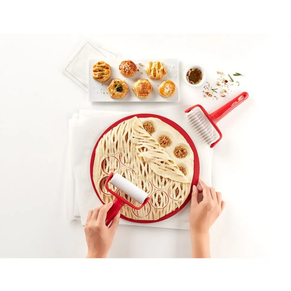 Bereid in een zeer korte tijd een grote selectie huisgemaakte hartige of zoete petits-fours, als komen ze van de traiteur. Je gasten zullen versteld staan! De set bevat een dubbelzijdige snijder die is ontworpen om 19 kleine zoute of zoete (ronde of hexagonale) ovenhapjes in één keer te bereiden, een soepele rol voor het snijden van deeg op de bovenkant en een andere ribbel voor het decoreren van het deeg van het traditionele visnetpatroon. Haal inspiratie uit het receptenboek, kies het deeg en de vulling waar je de voorkeur aan geeft en laat je fantasie de vrije loop!