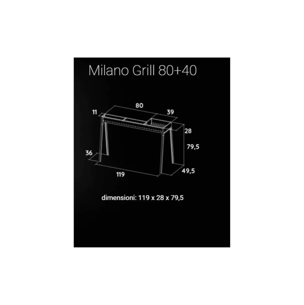 De Milano Grill 80+40 is een indrukwekkende barbecue met een lengte van 80cm, inclusief een extra 40cm opzet barbecue met grilrooster voor extra kookruimte. Deze barbecue, ontworpen door LISA, een vooraanstaand Italiaans bedrijf gespecialiseerd in barbecues en accessoires uit Abruzzo, biedt ongeëvenaarde sterkte en duurzaamheid dankzij het gebruik van hoogwaardig roestvrij staal (Inox).