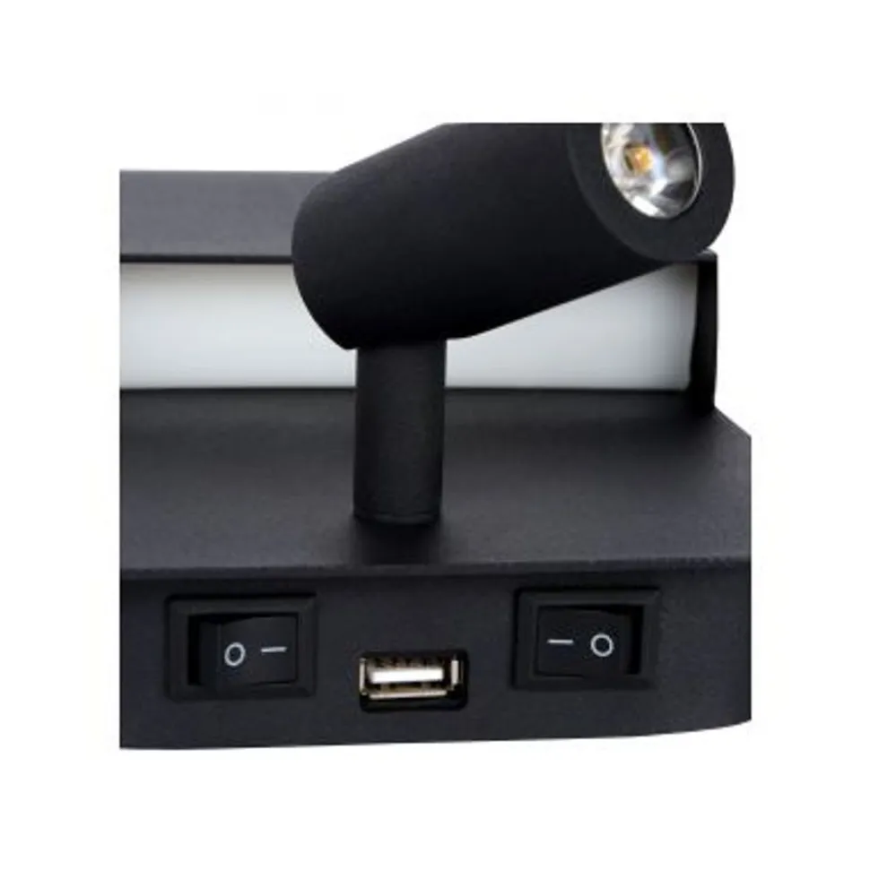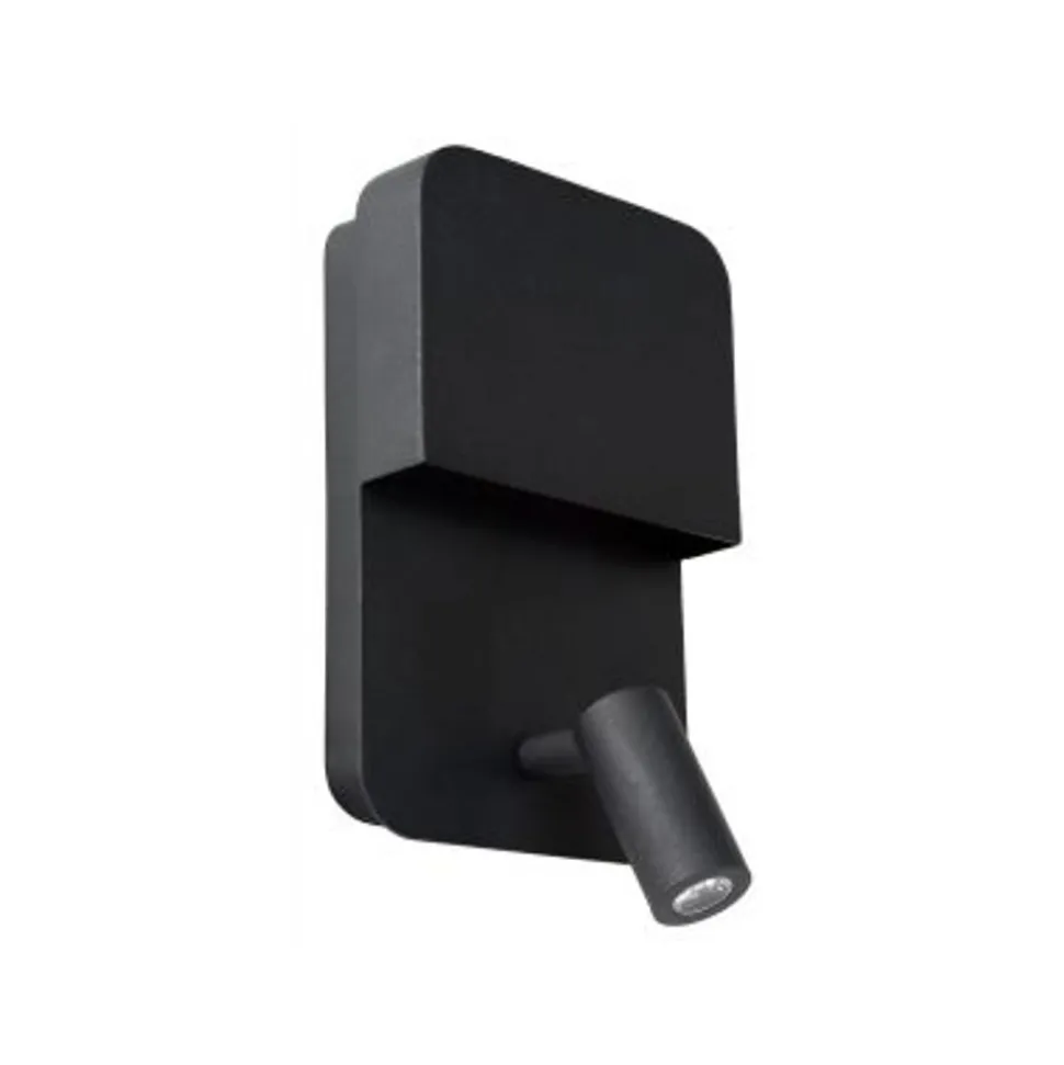 Lucide BOXER – Wandlamp – LED – 1x10W 3000K – Met USB oplaadpunt – Zwart Lucide