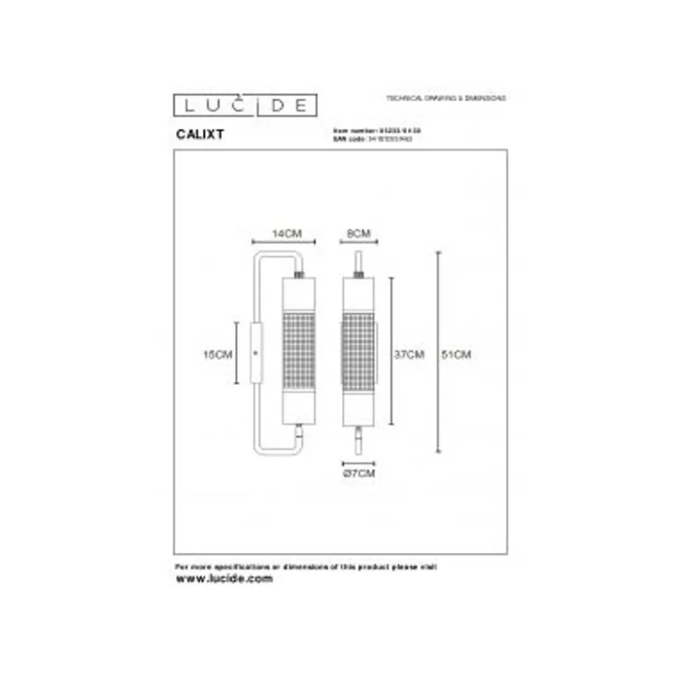 Wil jij ook onmiddellijk de aandacht trekken van je bezoek? Calixt denkt er net zo over. Met zijn fijne, cilindervormige armatuur vormt hij een elegante verschijning in je gang of in de woonkamer boven een commode. De lange filamentlamp zit verborgen achter gaas. Calixt biedt een speelse mix tussen moderne koelte en een warme gloed. Deze wandlamp is 51 centimeter lang en 14 centimeter diep. Door aan te sluiten op een wanddimmer is hij de ideale sfeerverlichting op elk moment van de dag.