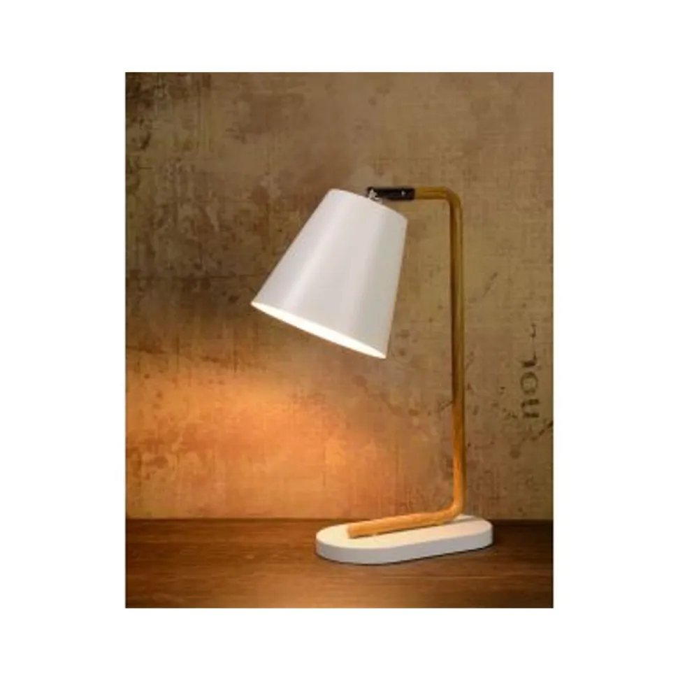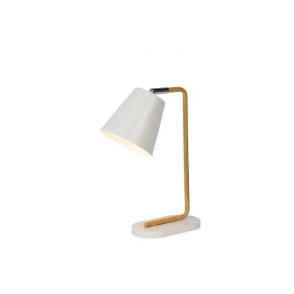 Duurzaam, puur, functioneel en authentiek. Dit is in een notendop waar modern Scandinavisch design voor staat. Deze kwaliteiten worden verenigd in de schitterende Cona tafellamp van Lucide. Ondanks dat de Cona eenvoud uitstraalt werden er toch zeer mooie details in dit armatuur verwerkt. Neem bijvoorbeeld de houtmotief stalen stang die in een schitterende ronding vanaf de kap volledig doorloopt over het horizontale vlak van de ovaal gevormde voet. De redelijk grote wit metalen kap met een Ø 14 cm geeft een aangenaam licht. Daarnaast werd de kap voorzien van een kniegewricht waardoor deze eenvoudig te draaien en te richten is. De Cona is er als tafel en vloerlamp.