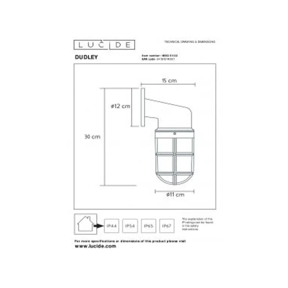 Lucide DUDLEY – Wandlamp Buiten – 1xE27 – IP65 – Mat Goud / Messing