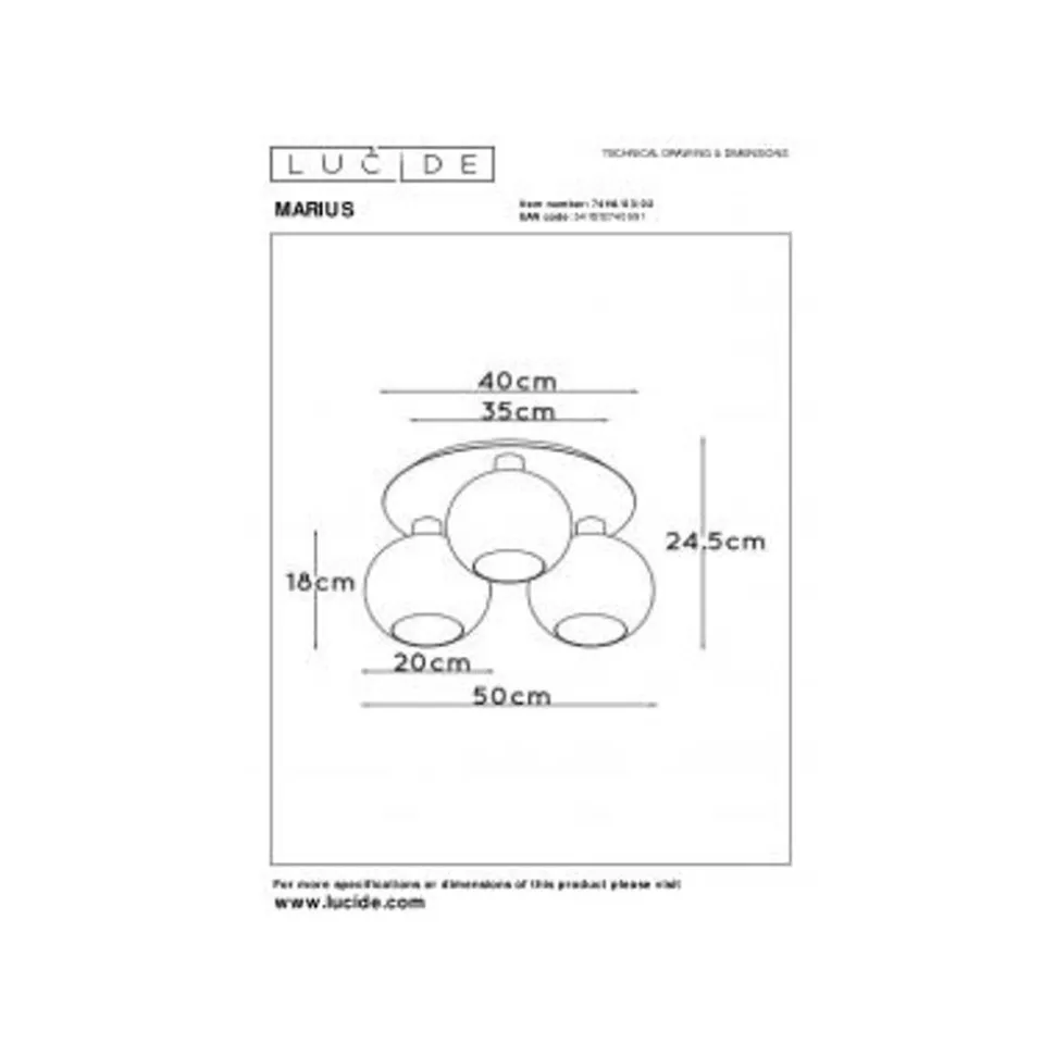 Lucide MARIUS – Plafonnière – 3xE27 – Mat Goud / Messing