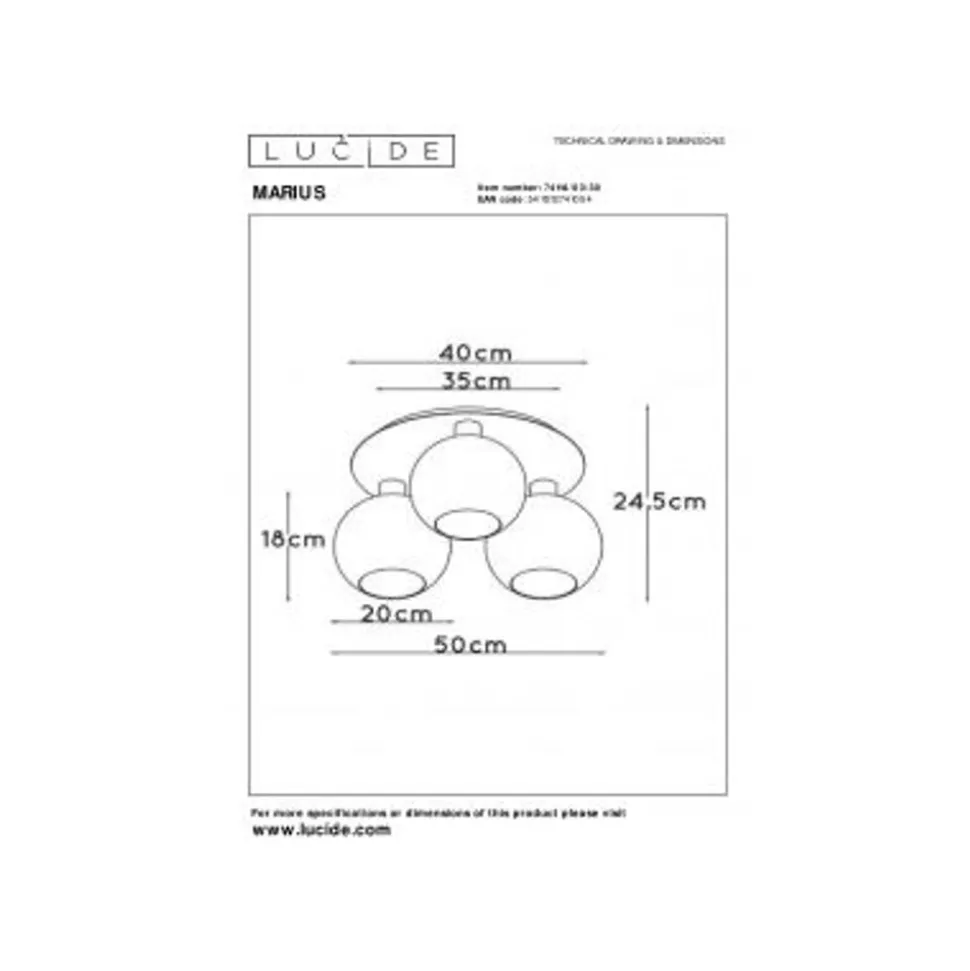 Lucide MARIUS – Plafonnière – 3xE27 – Zwart