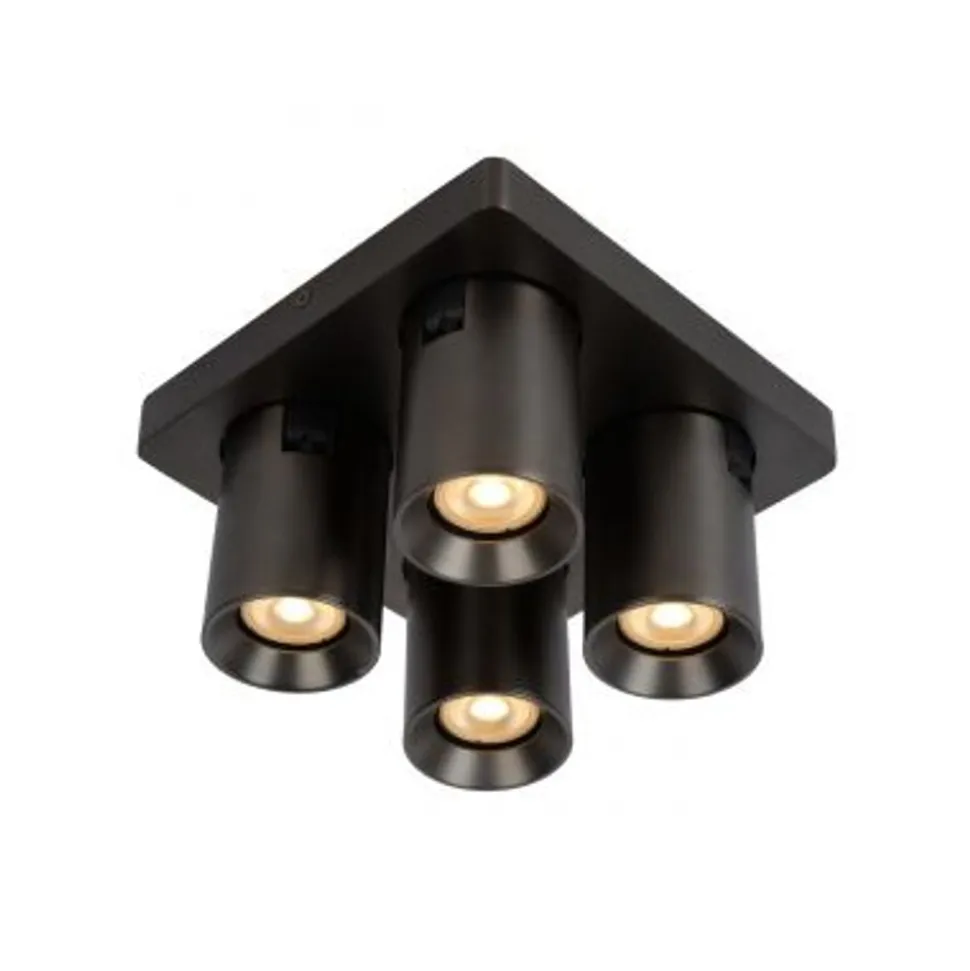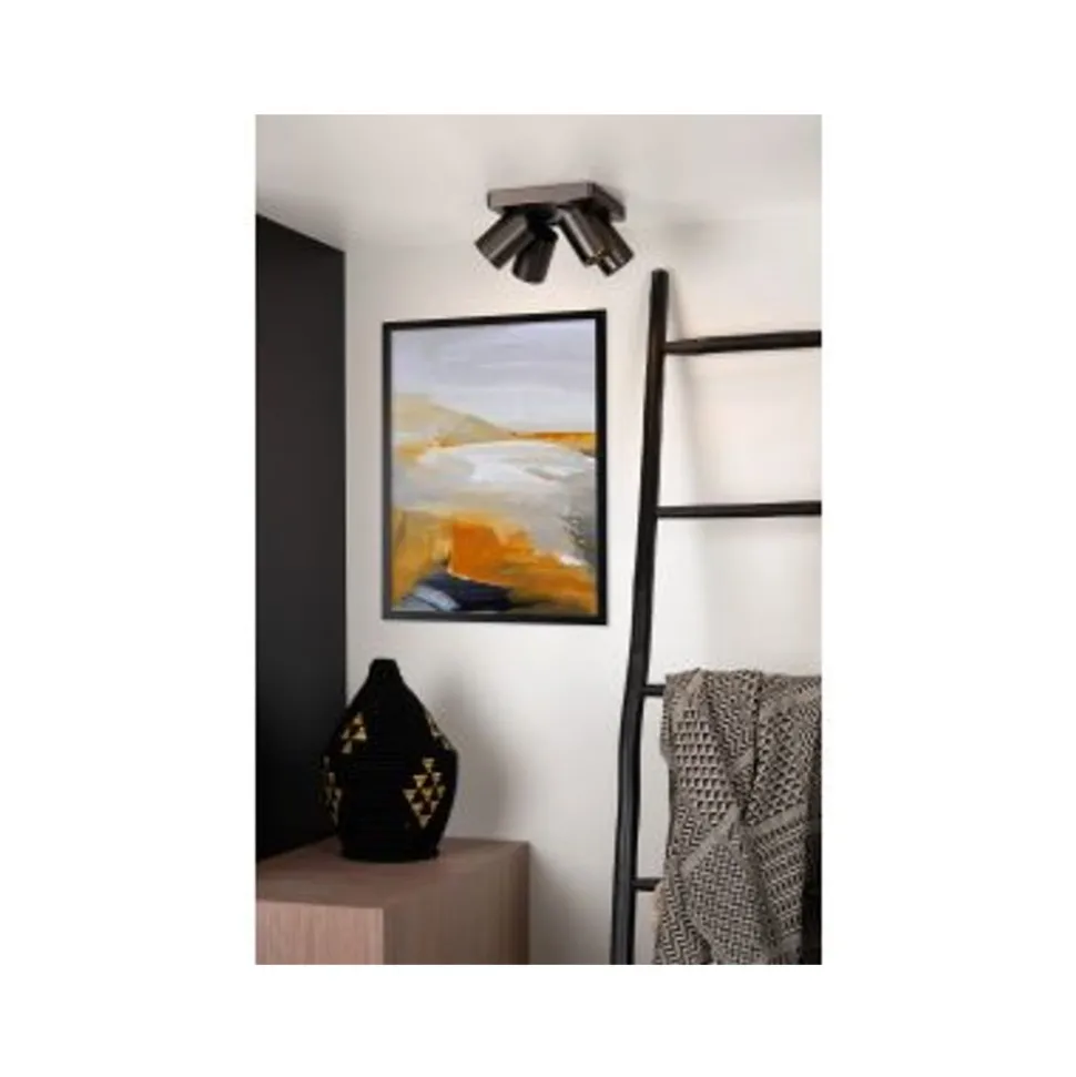 Lucide NIGEL – Plafondspot – LED Dim to warm – GU10 – 4x5W 2200K/3000K – Zwart Staal