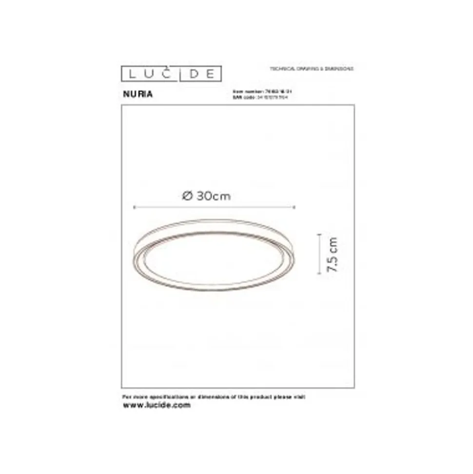 Lucide NURIA – Plafonnière – Ø 30 cm – LED Dimb. – 1x18W 2700K – 3 StepDim – Wit Lucide