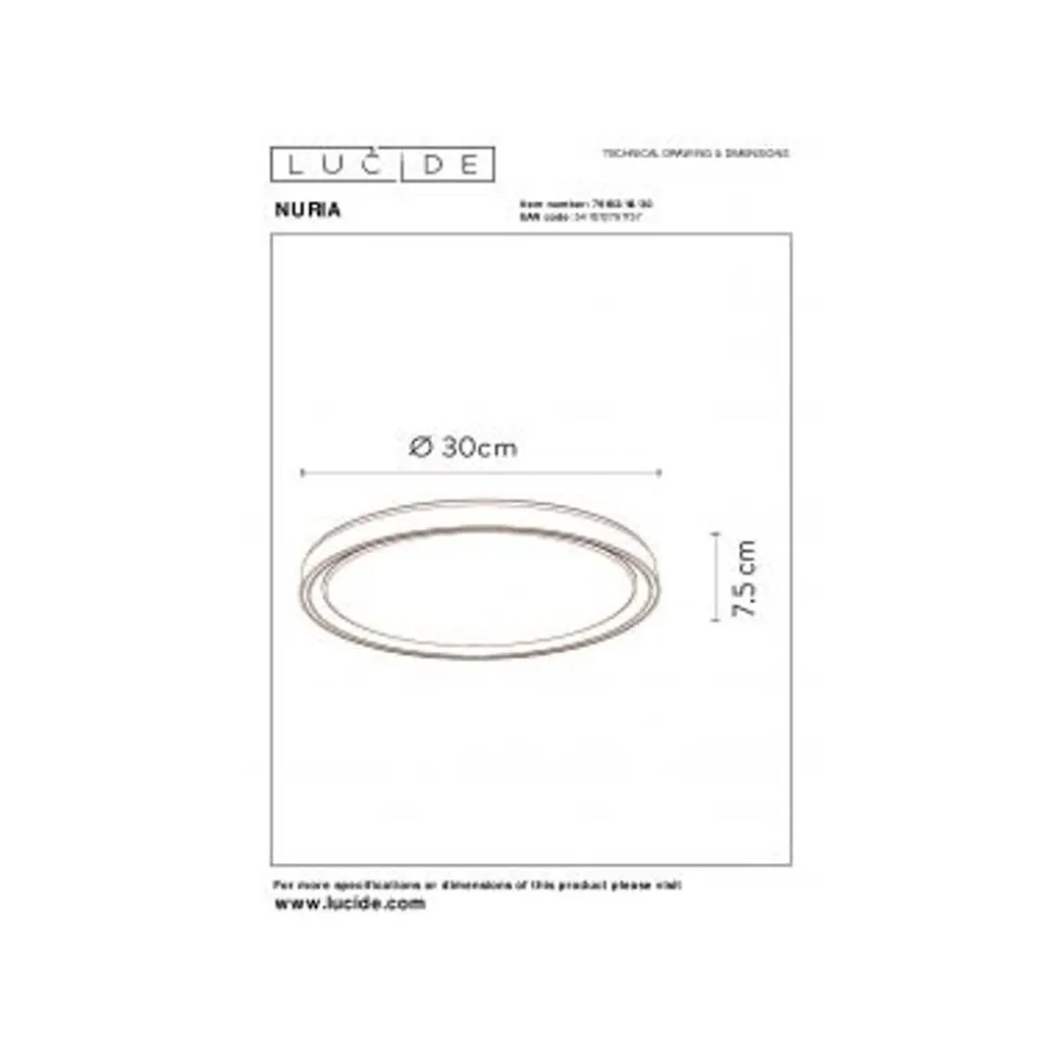 Lucide NURIA – Plafonnière – Ø 30 cm – LED Dimb. – 1x18W 2700K – 3 StepDim – Zwart Lucide