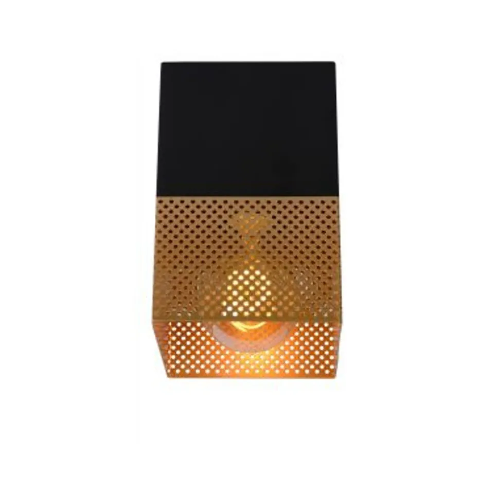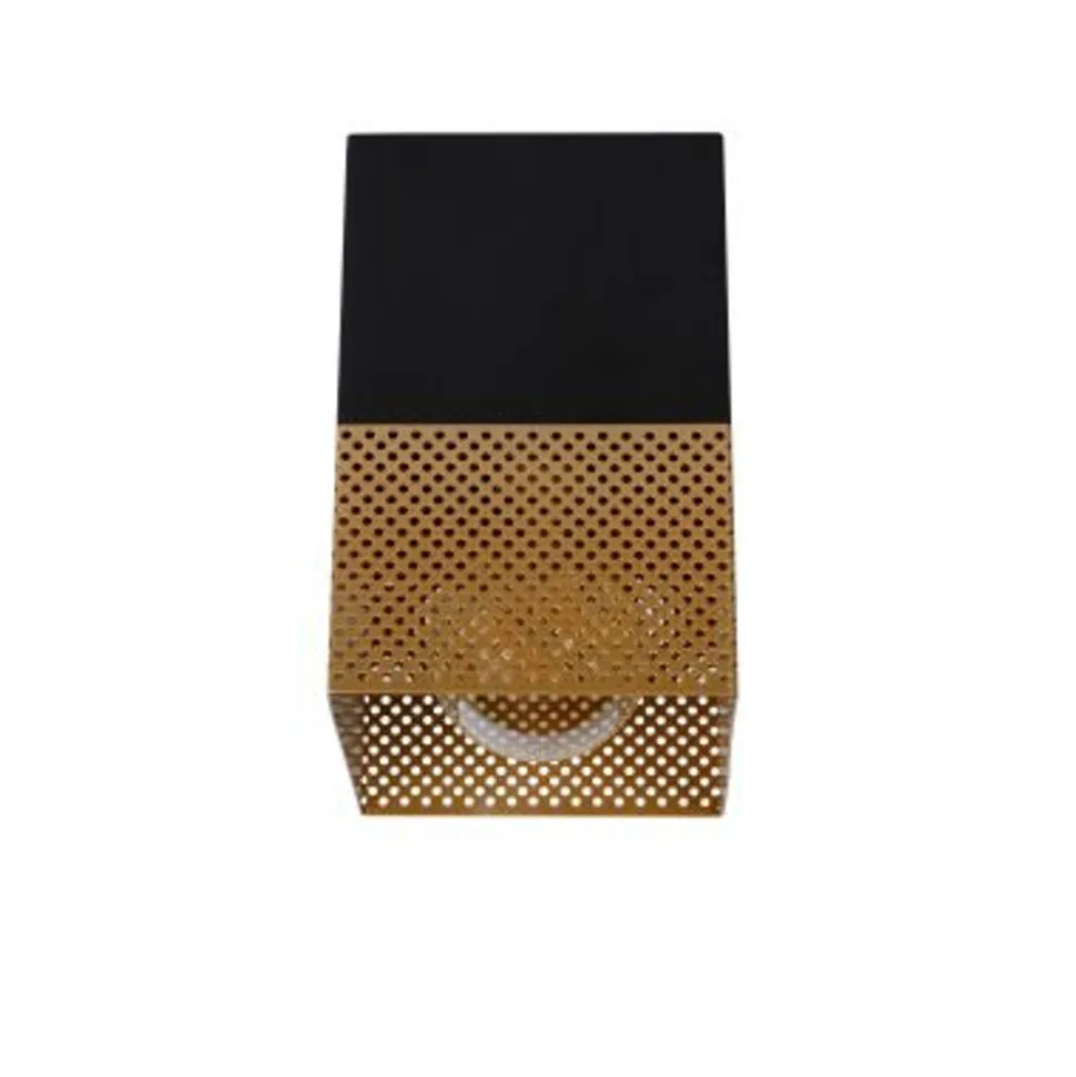 Plafonnière Renate is de hoogmis van kubisme met een twist. De bovenste, zwarte kubus biedt een dragende structuur voor de messing kubus rondom het lichtpunt. De zijden van deze open kubus zijn geperforeerd. Een leuk detail in het ontwerp, met extra voordelen. De moderne armatuur is vervaardigd uit hoogwaardig metaal en projecteert het licht netjes naar beneden. Of hoe functionaliteit en design hand in hand gaan. De kleine afmetingen, 10 op 10 centimeter met een hoogte van 16 centimeter, maken het mogelijk om meerdere Renates te combineren in eenzelfde ruimte.