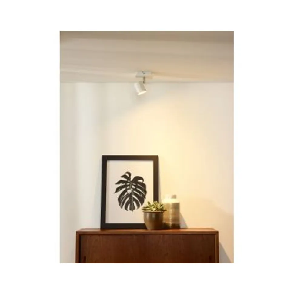 De opbouwspot Rilou 1-lichts LED van Lucide is 100% eenvoud en behoort hierdoor echt tot de categorie tijdloos design. De witte metalen cilindervormige spot in combinatie met de strak vormgegeven plafondplaat is een onmiskenbaar sterke combinatie. Met een plafondplaat afmeting van 10cm x 10cm laat de Rilou zich eenvoudig over een centraaldoos plaatsen. De Rilou is een betaalbaar en toch zeer degelijk afgewerkt armatuur. Door zijn 360 graden draaibare kop is de Rilou gemakkelijk te richten. De Rilou is voorzien van een 4.5W – warm witte – 3000 Kelvin – energie besparende – dimbare – LED lichtbron. Deze eenvoudig te dimmen (dimmer exclusief) LED lichtbron heeft een lichtopbrengst van 340 Lumen per spot. De Rilou is verkrijgbaar in een 1, 2, 3 en een 4-lichts variant.