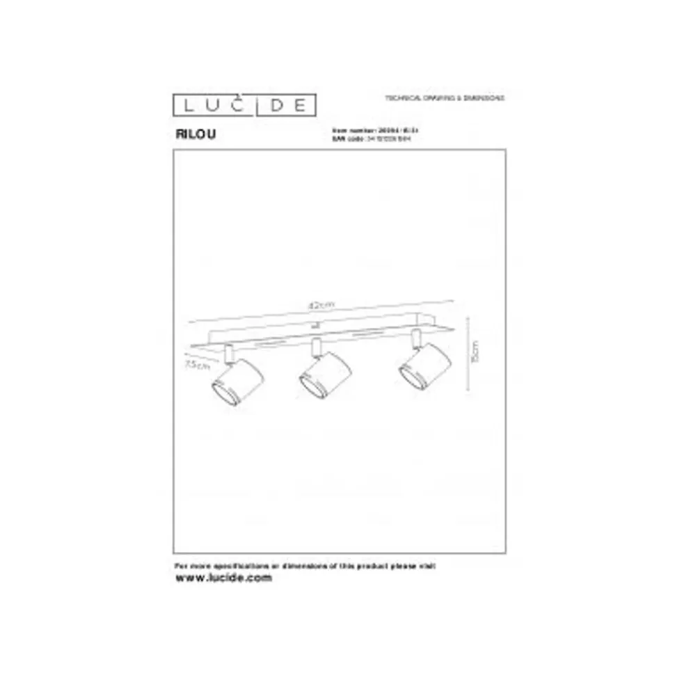 Lucide RILOU – Plafondspot – LED Dimb. – GU10 – 3x5W 3000K – Wit Lucide