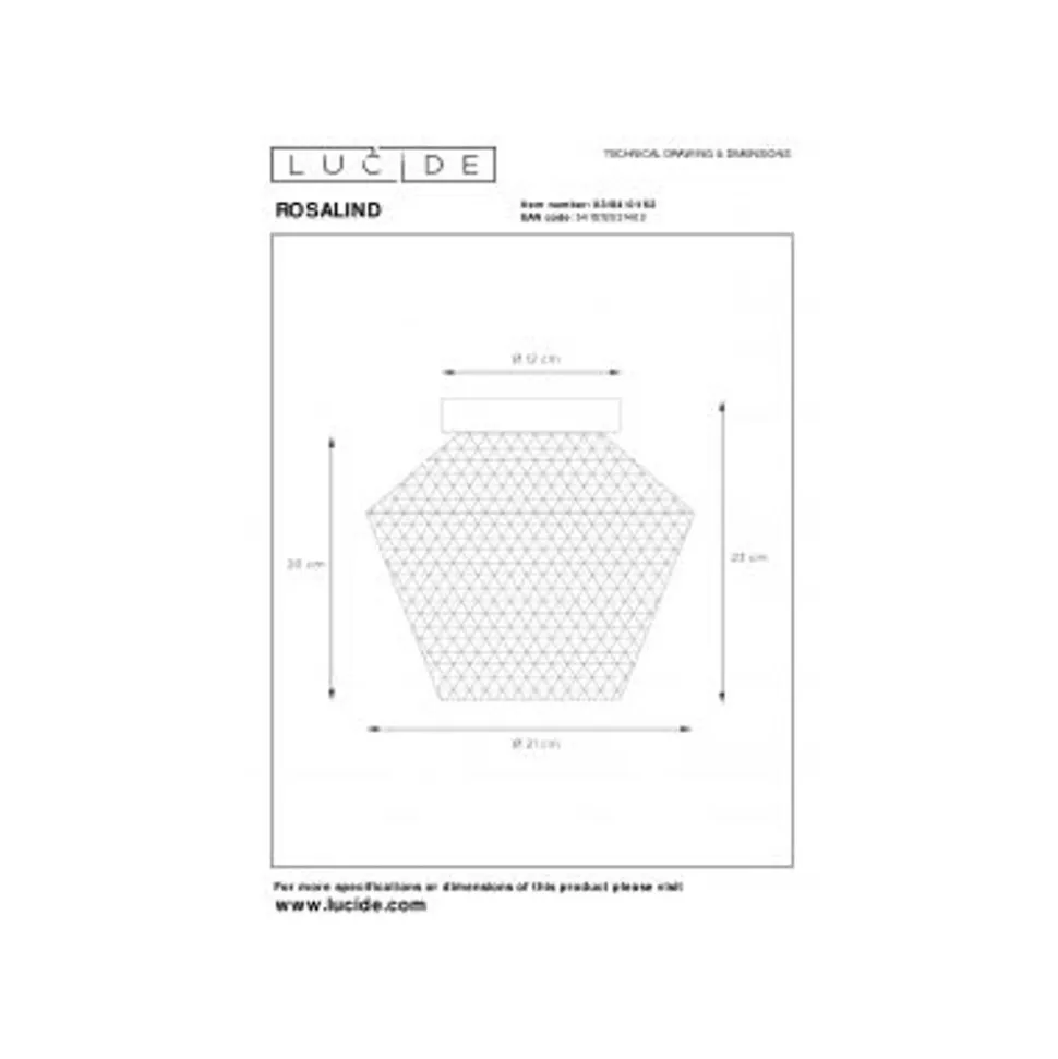 Lucide ROSALIND – Plafonnière – Ø 21 cm – 1xE27 – Amber