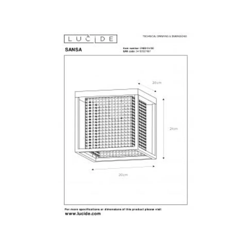 Lucide SANSA – Plafonnière – 1xE27 – Zwart Lucide