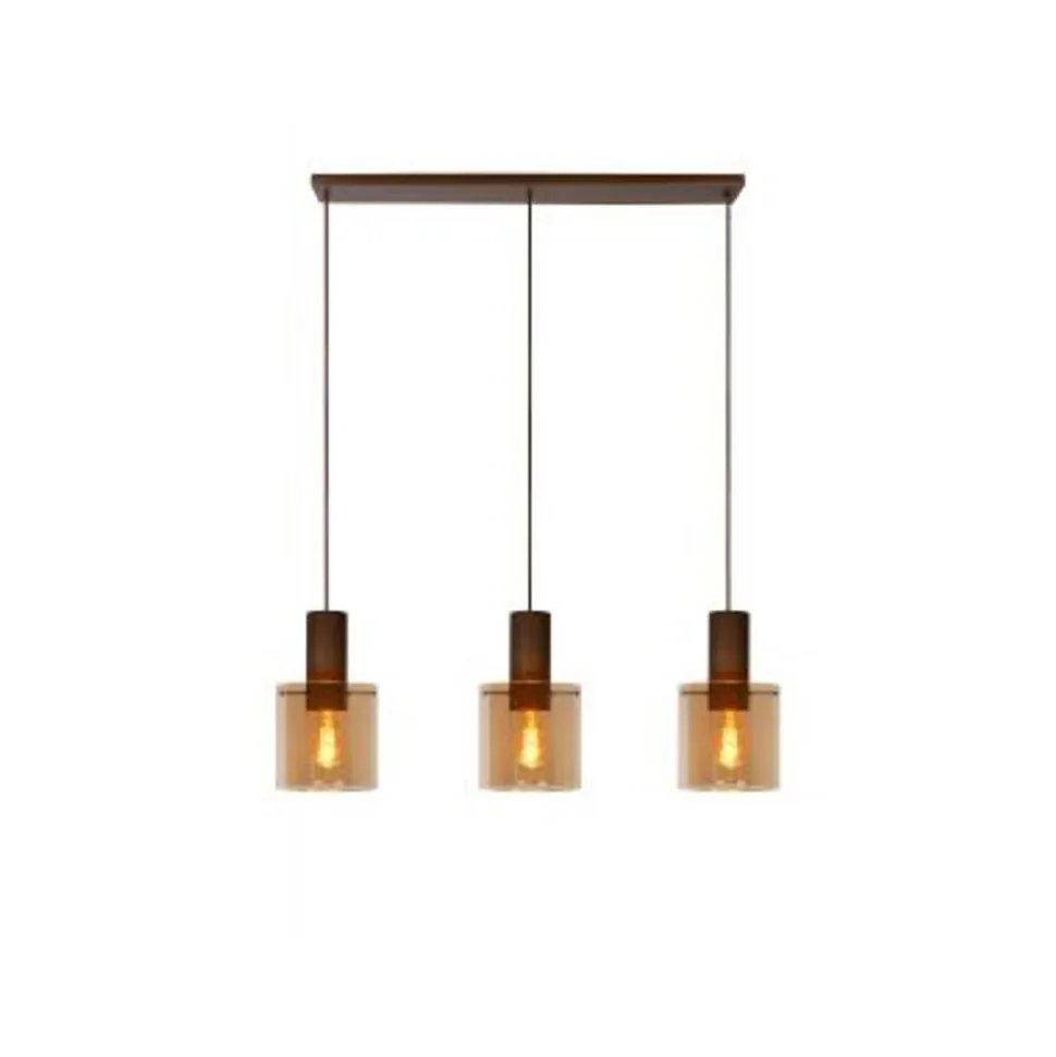 Lucide TOLEDO Hanglamp 3xE27/60W Koper / Amber glas