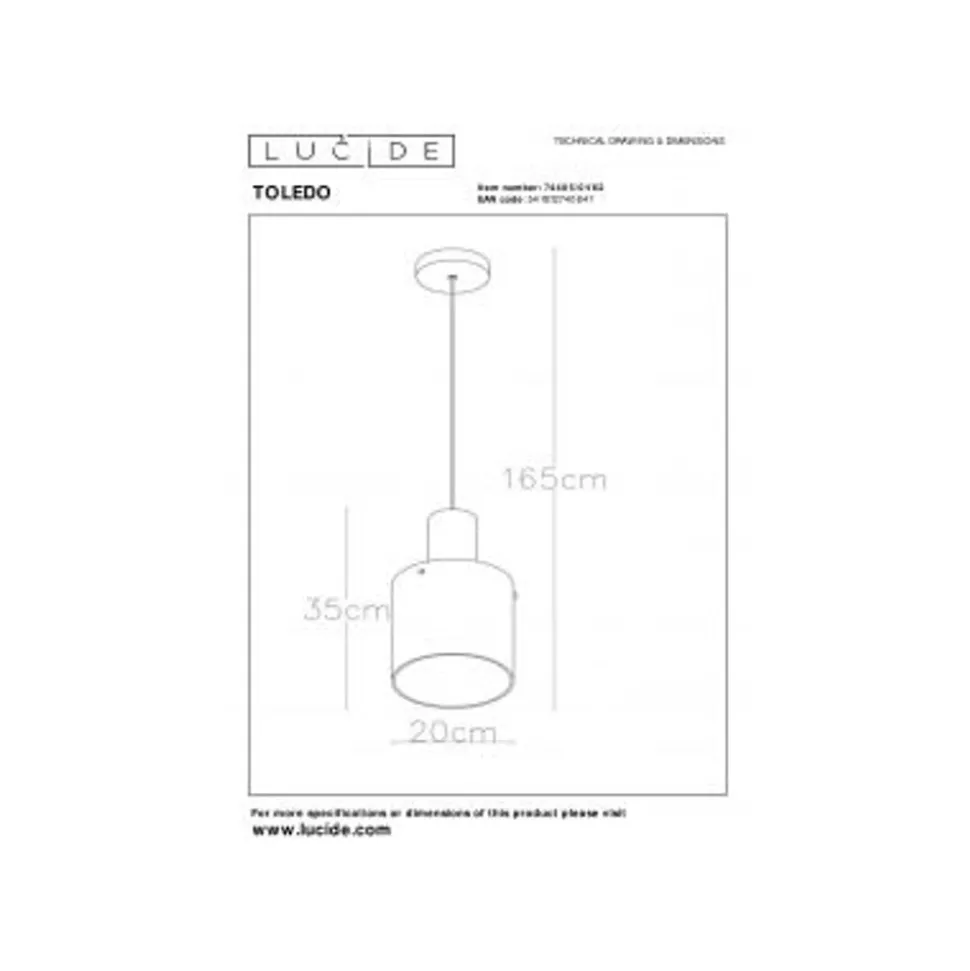 Lucide TOLEDO Hanglamp E27/60W Koper / Amber glas