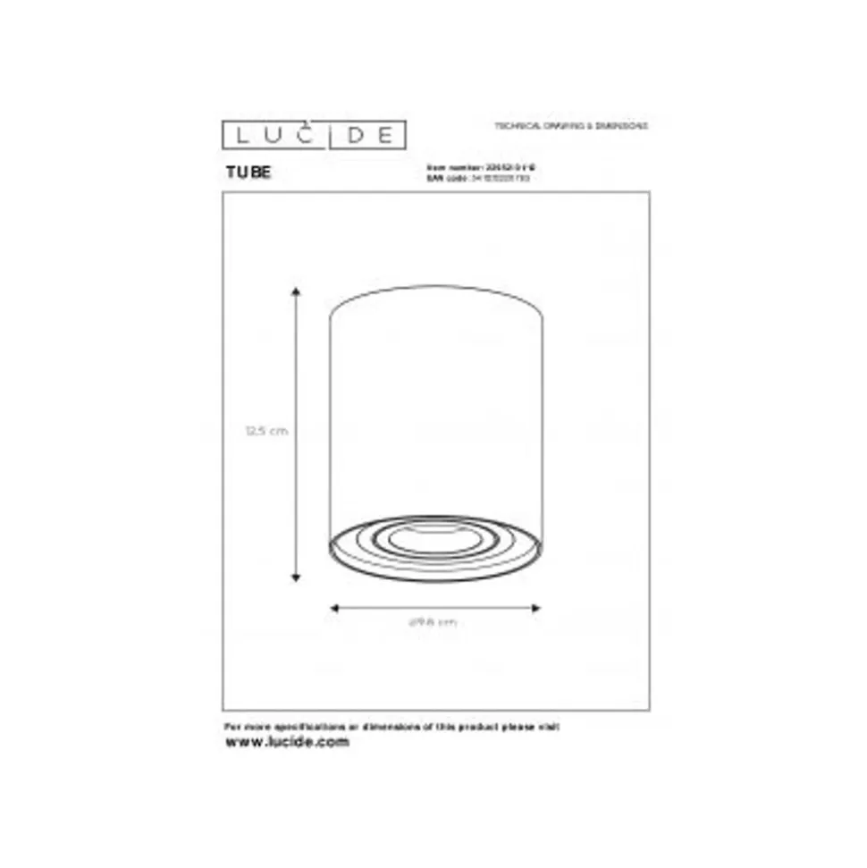 Lucide TUBE – Plafondspot – Ø 9,6 cm – 1xGU10 – Mat chroom
