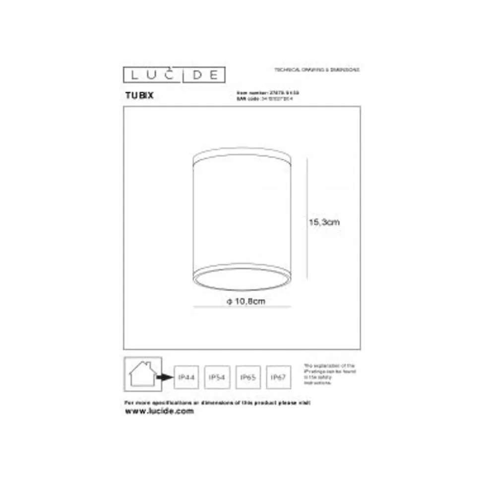 Lucide TUBIX – Plafondspot Buiten – Ø 10,8 cm – 1xE27 – IP54 – Antraciet