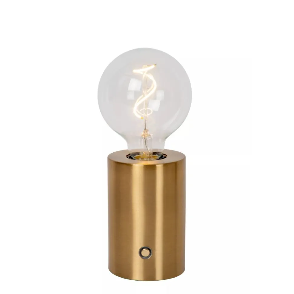 Lucide VIVO – Oplaadbare Tafellamp – Accu/Batterij – Ø 8 cm – LED Dimb. – E27 – 1x1W 2700K – Mat Goud / Messing