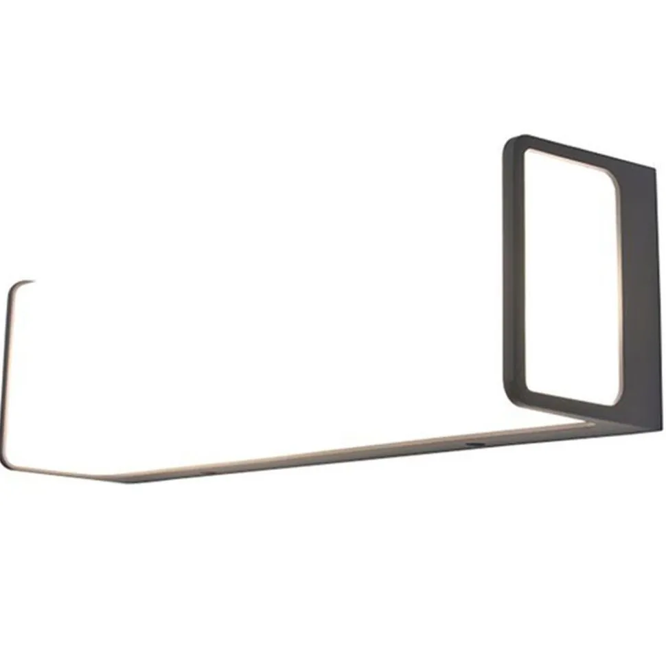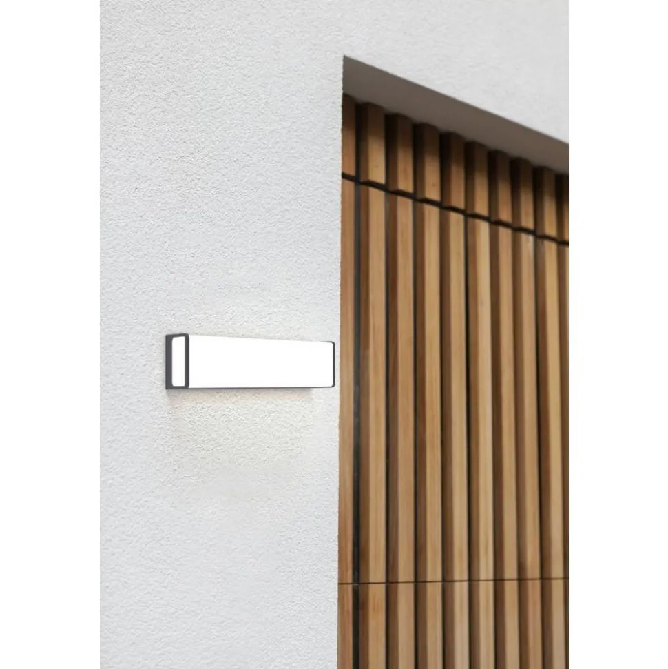 Deze antracietgrijze led-wandlamp zit in een rechthoekige houder van duurzaam gegoten aluminium. Het elegante design straalt een krachtig koelwit licht van 2200 lumen uit.