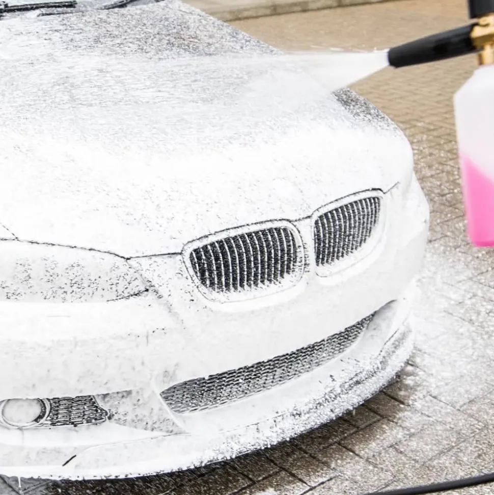 Je wagen wassen met een min. aan wrijfkracht dankzij de specifieke shampoo voor de foamlans.