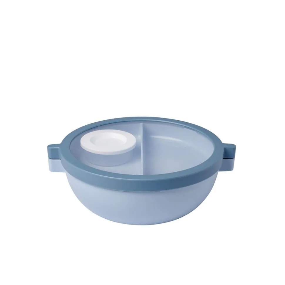 Geniet onderweg, op het werk en in de collegezaal van de lekkerste lunches in de Mepal Vita bento lunchbowl. De schroefdeksel zorgt voor een lucht- en lekdichte afsluiting; zo blijft je lunch vers en je waardevolle tasinhoud schoon. Het kleine bakje is perfect om te vullen met een dressing of toppings. Je favoriete salade neem je mee in het grote compartiment met deksel.