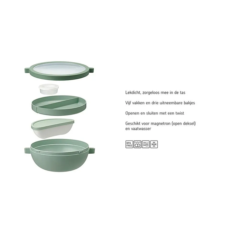 - Geschikt voor magnetron (deksel mag los op de bowl) en vaatwasser