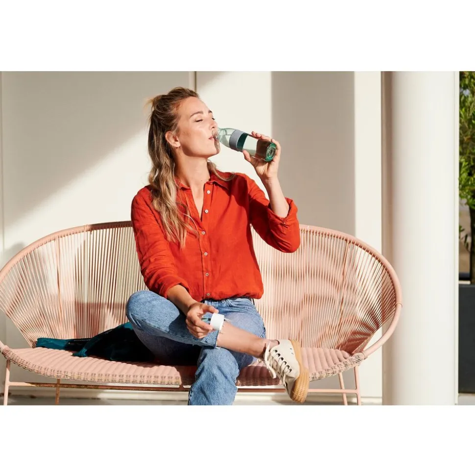 Waterfles Ellipse 500 ml in de kleur Vivid mauve. Gezond, milieubewust en voordelig, dat is deze hippe, hervulbare waterfles van Mepal. Handig voor op het werk, tijdens het sporten of tijdens uw vrijetijdsbesteding. De dop kan heel eenvoudig worden opengedraaid en is voorzien van een Vivid mauve lusje, waarmee de waterfles gemakkelijk kan worden meegenomen. De Ellipse waterfles bevat géén BPA of weekmakers, is vaatwasserbestendig (zonder elastiek) en 100% lekvrij! Berg de fles na het reinigen zonder dop op. De dop kan eenvoudig aan de fles bevestigd worden met behulp van het lusje, zodat je de dop niet kwijtraakt. Daar hebben we over nagedacht! Extra tip: Vul bij koolzuurhoudende dranken de fles niet helemaal tot de rand.