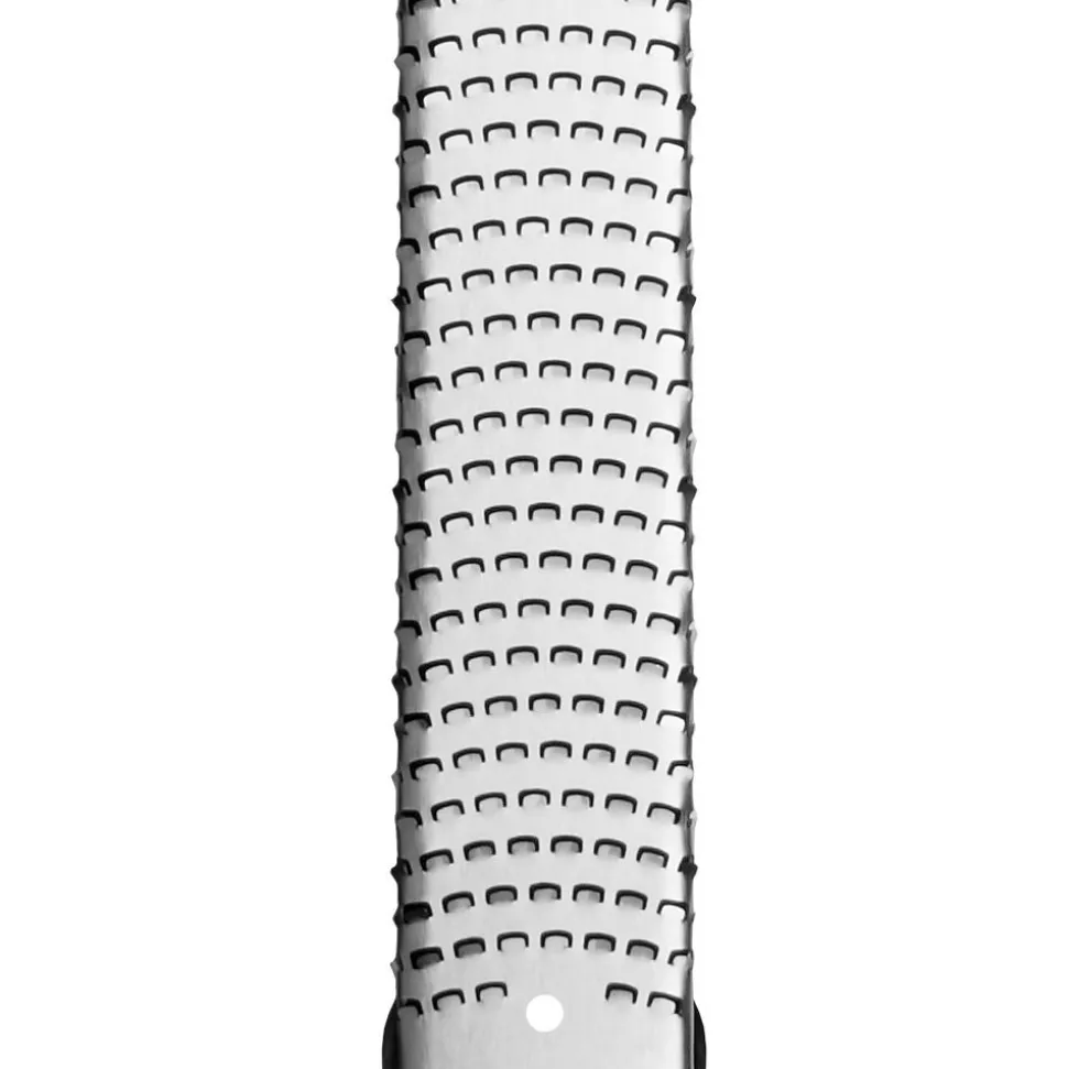 De Zester rasp van Microplane® heeft een succesverhaal geschreven en is wereldwijd een bestseller. Het heeft de vorm van een vijl en wordt gewaardeerd door zowel professionele als amateurkoks. Het wrijfresultaat is zeer fijn, bijna als engelenkrullen en is ideaal voor alles wat fijn gewreven moet worden.