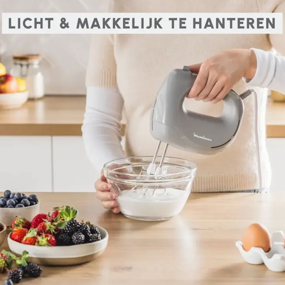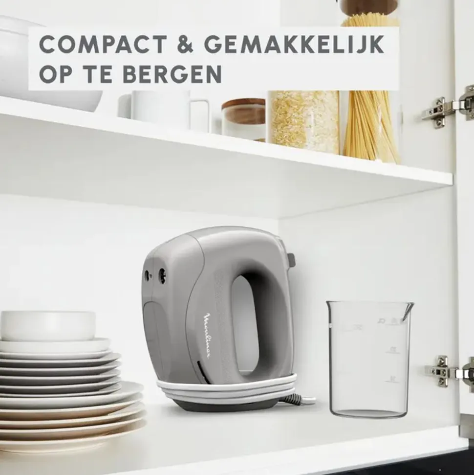 Geniet van perfect kloppen met de meest compacte Moulinex handmixer!