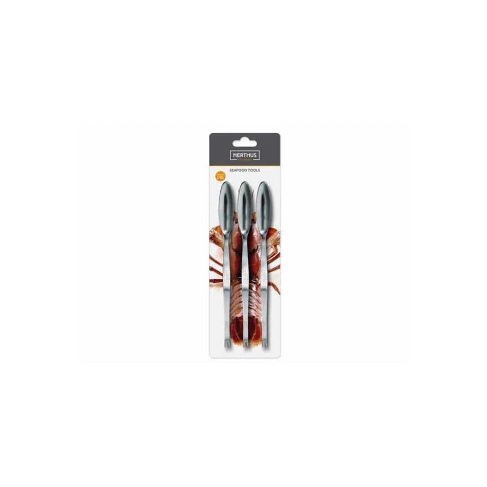Set van 3 kreeftenvorken. Haal vlees gemakkelijk uit kreeft en schaaldieren. Een must-have voor liefhebbers van zeevruchten. Robuust en efficiënt ontwerp van roestvrij staal. Lengte: 21 cm.