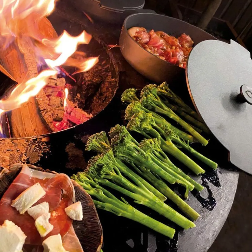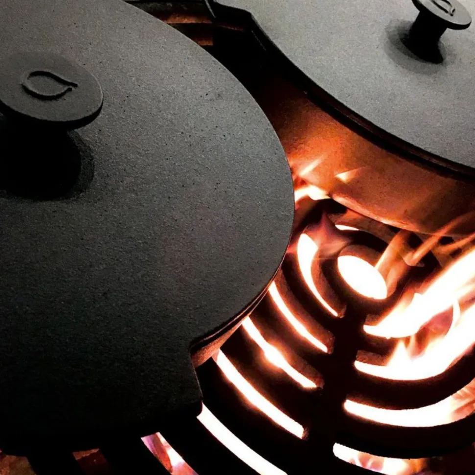 Deze set bestaat uit twee strak vormgegeven gietijzeren pannen met diameters van 21cm en 26cm. De pannen zijn uitstekend geschikt om op de OFYR kookplaat gebruikt te worden om allerlei gerechten in te bereiden. De pannen kenmerken zich door een perfecte warmteverdeling. De knop van de deksel van de pan kan gloeiend heet worden. Gebruik derhalve hittebestendige handschoenen zoals de OFYR handschoenen om de hete deksel te verwijderen.