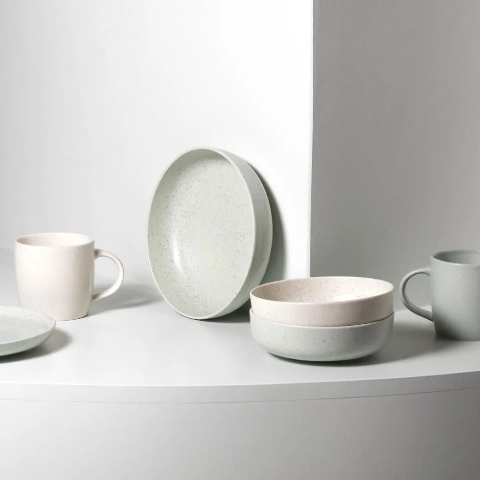 Hou je van een minimalistische uitstraling op je eettafel? Dan is onze DOT-collectie iets voor jou! Deze collectie bestaat uit borden, kommen en mokken, verkrijgbaar in stijlvol beige en levendig groen, elk met een subtiele, trendy spikkel. Bovendien is de collectie gemaakt van porselein, wat stevigheid garandeert!