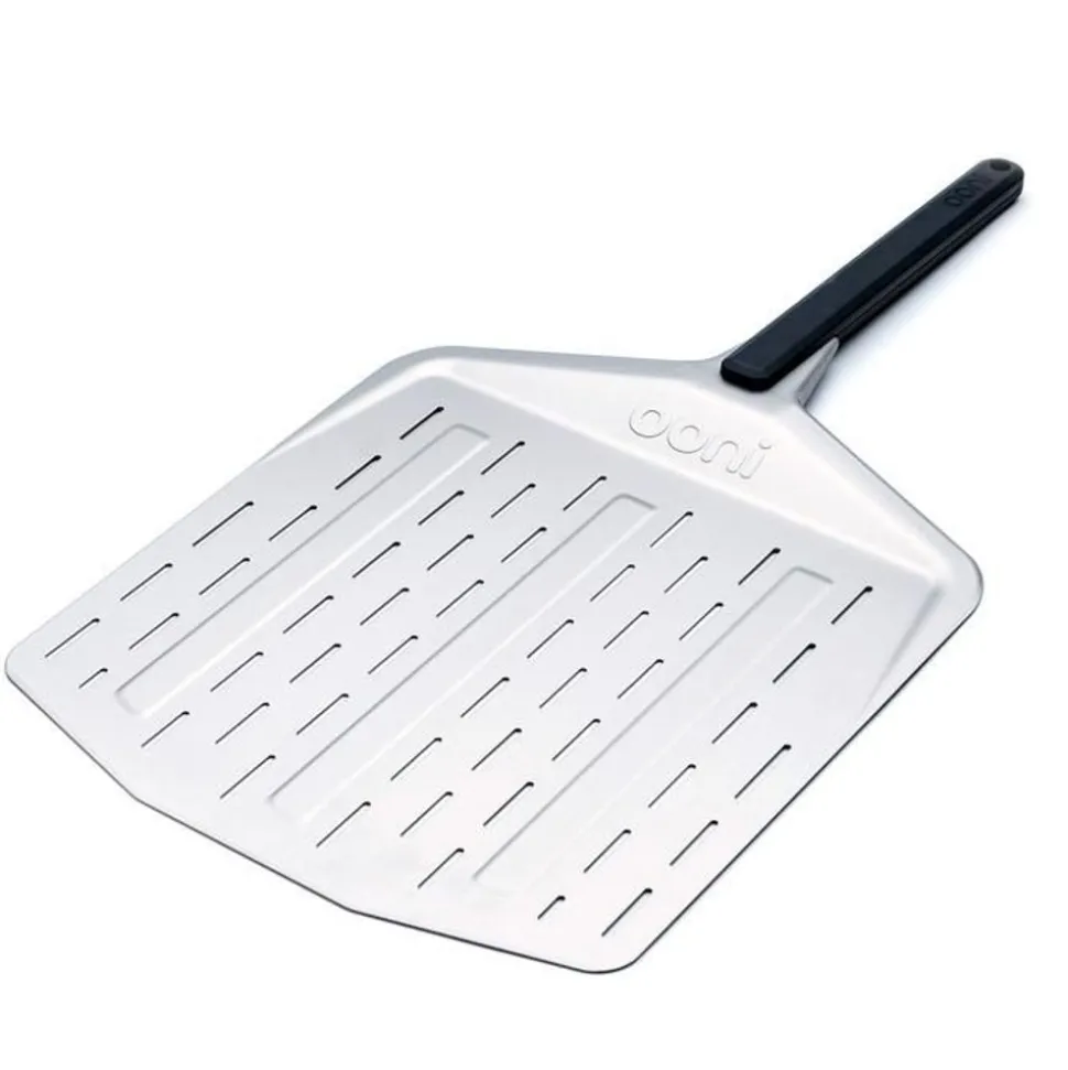 De geperforeerde aluminium Ooni 12 ″ geperforeerde pizzaschil is ontworpen voor het koken van pizza’s tot 30 cm breed en is een hoogwaardige, lichtgewicht schil waarmee u gemakkelijk pizza’s kunt schuiven, draaien en uit de oven halen.