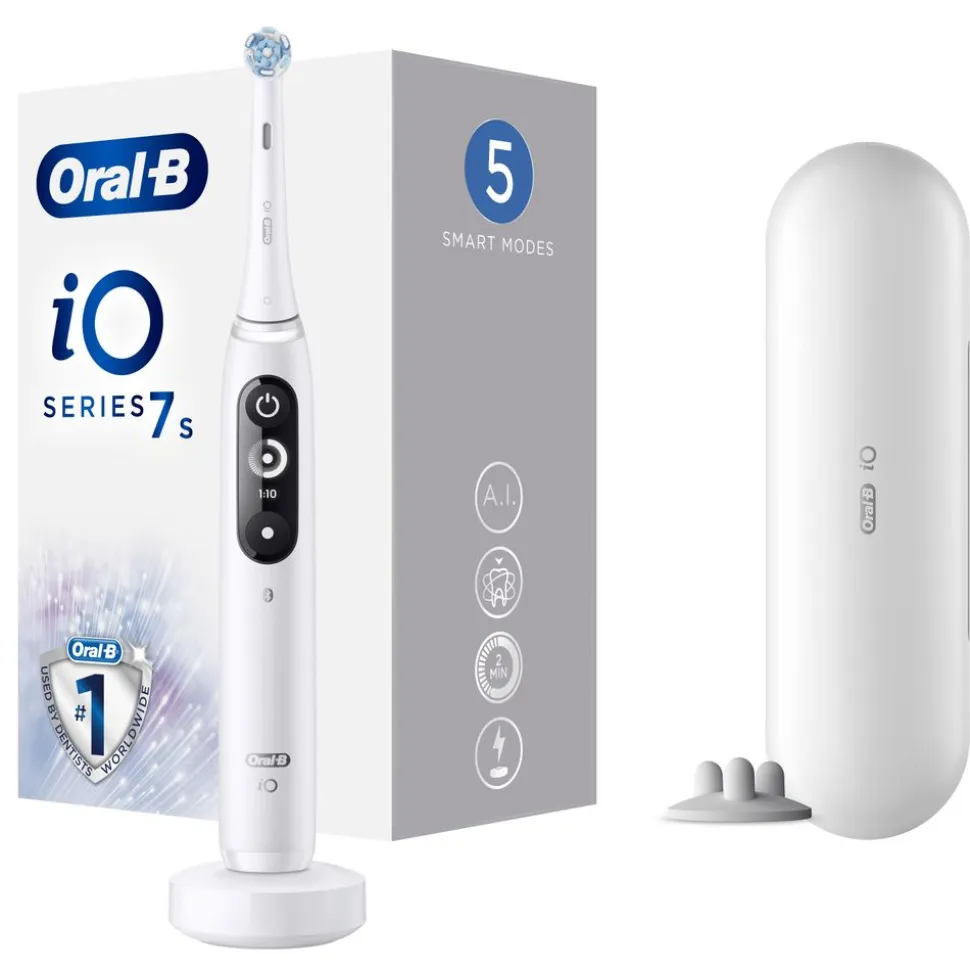 Bevat: 1 iO™7-handvat met ultimate clean opzetborstel, 1 premium reisetui, 1 oplader, 1 opzetborstelhouder